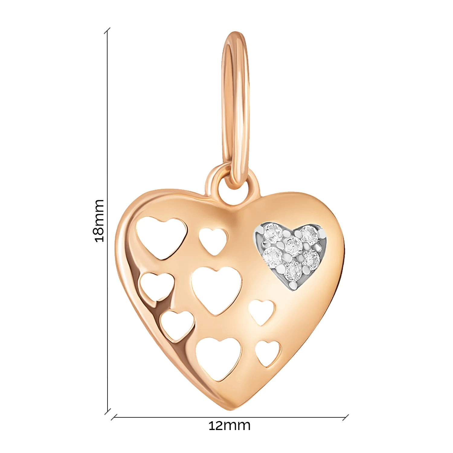Подвес из красного золота с фианитами "Сердце" - 963258