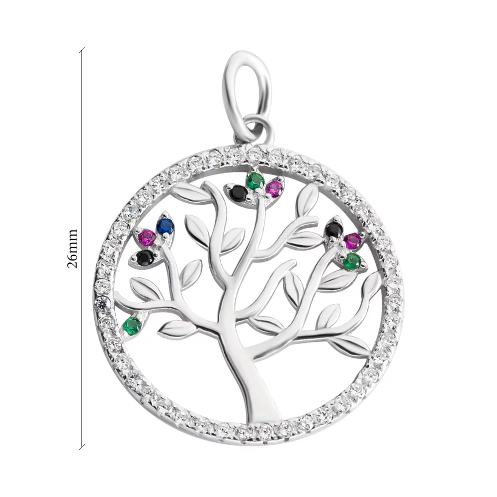 Подвеска серебряная "Дерево" с цветными фианитами - 421583