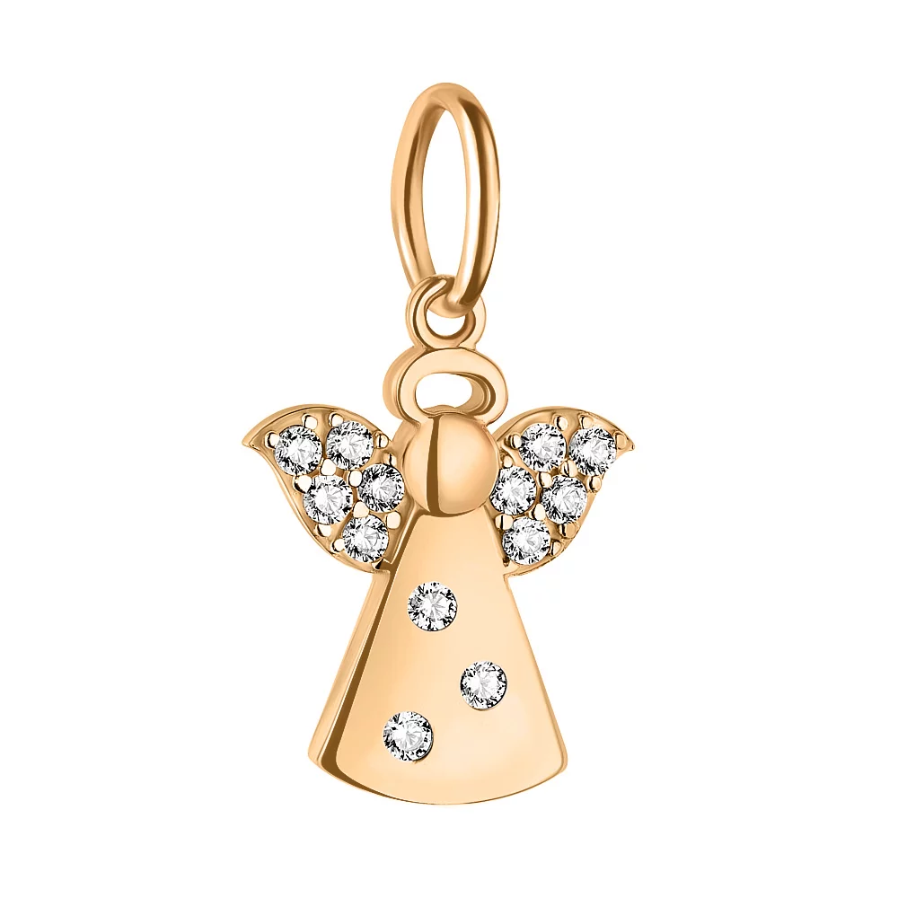 Подвес в красном золоте с фианитами "Ангелочек" - 1564393