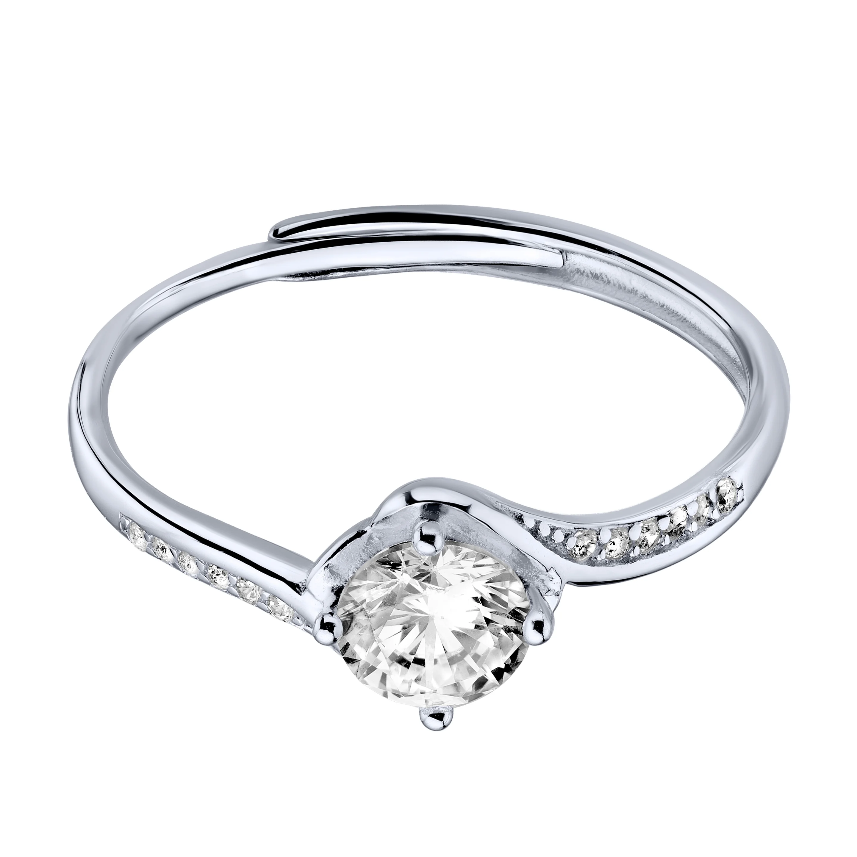 Раздвижное кольцо с фианитами в серебре - 2001683