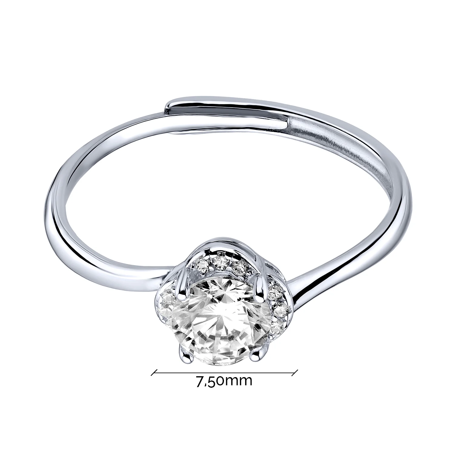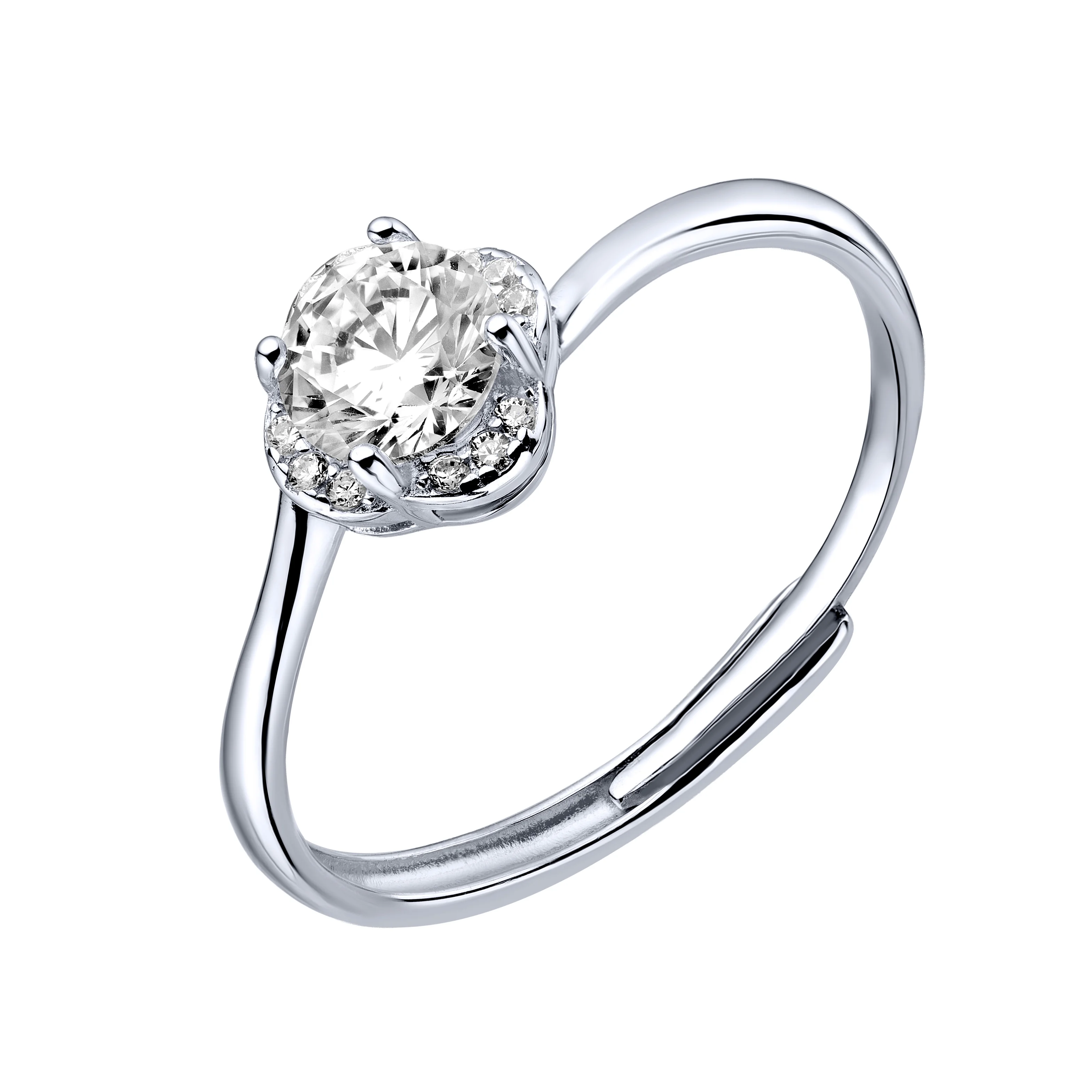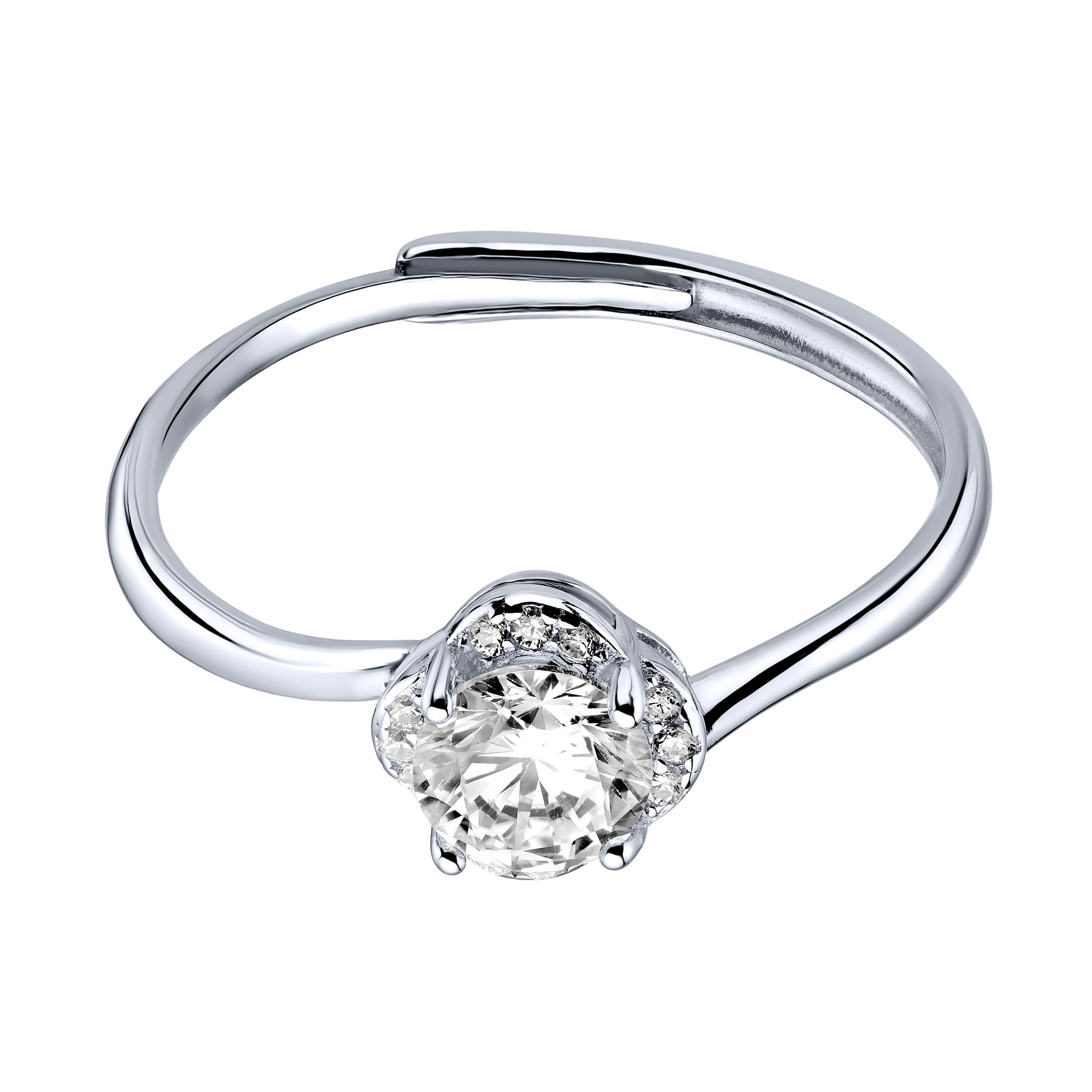 Раздвижное серебрянное кольцо в минималистичном стиле с фианитами - 2001900