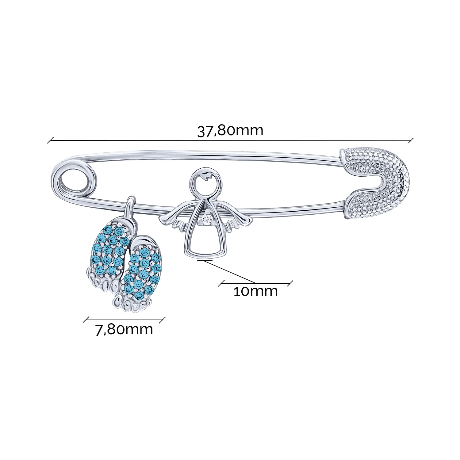 Серебряная булавка "Ангел" с фианитами - 2083437