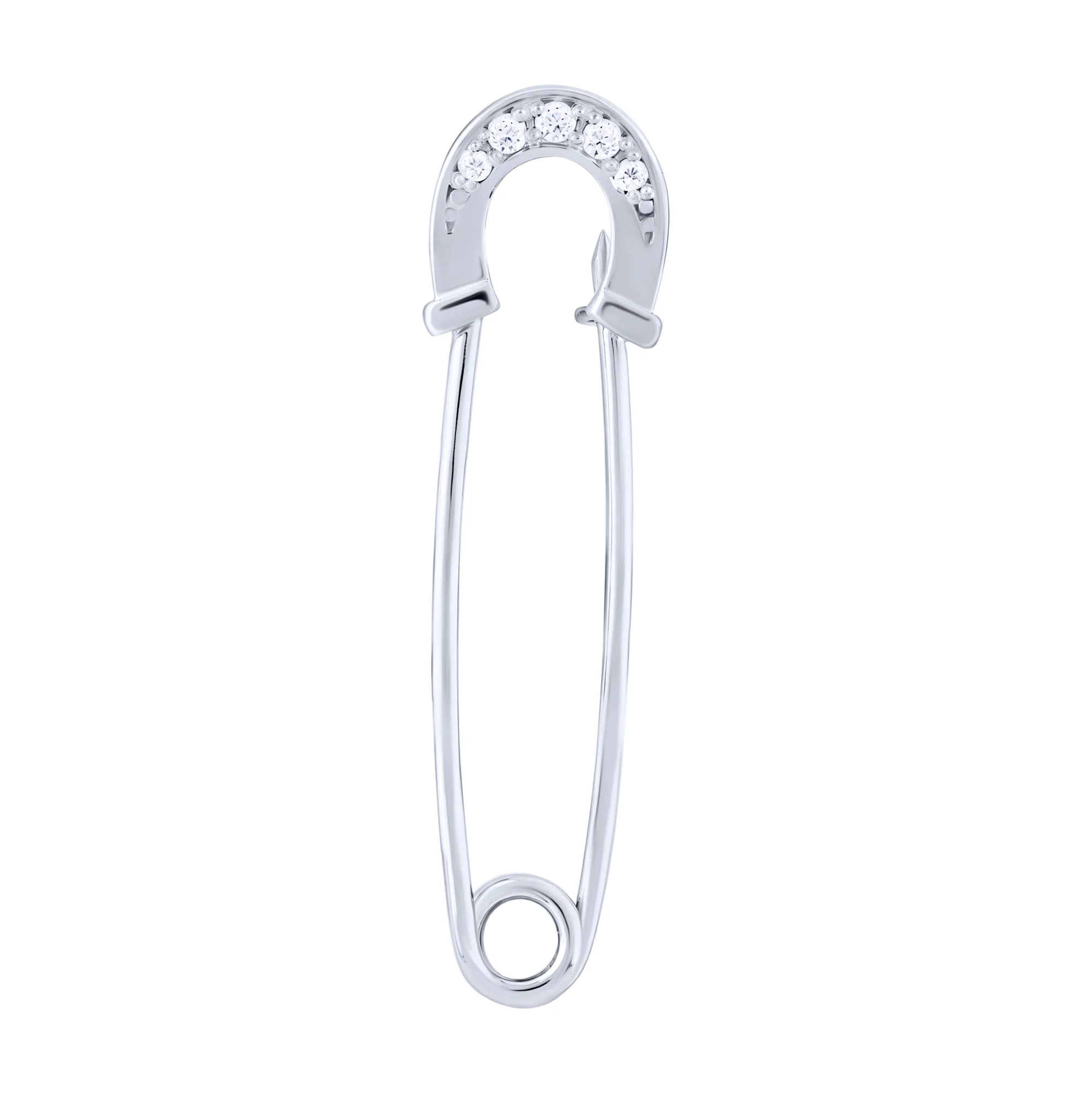 Серебряная булавка "Подкова" с фианитами - 2101248