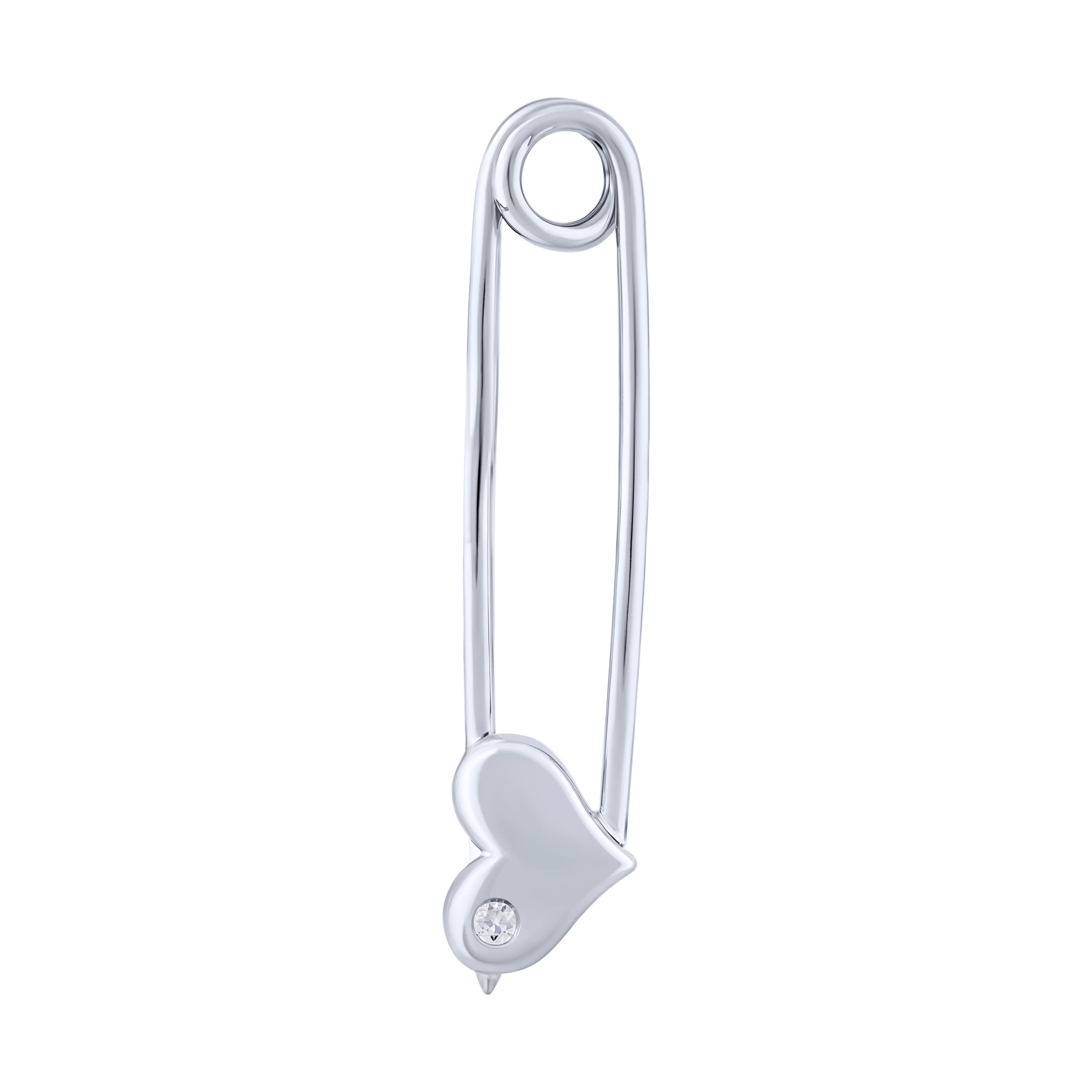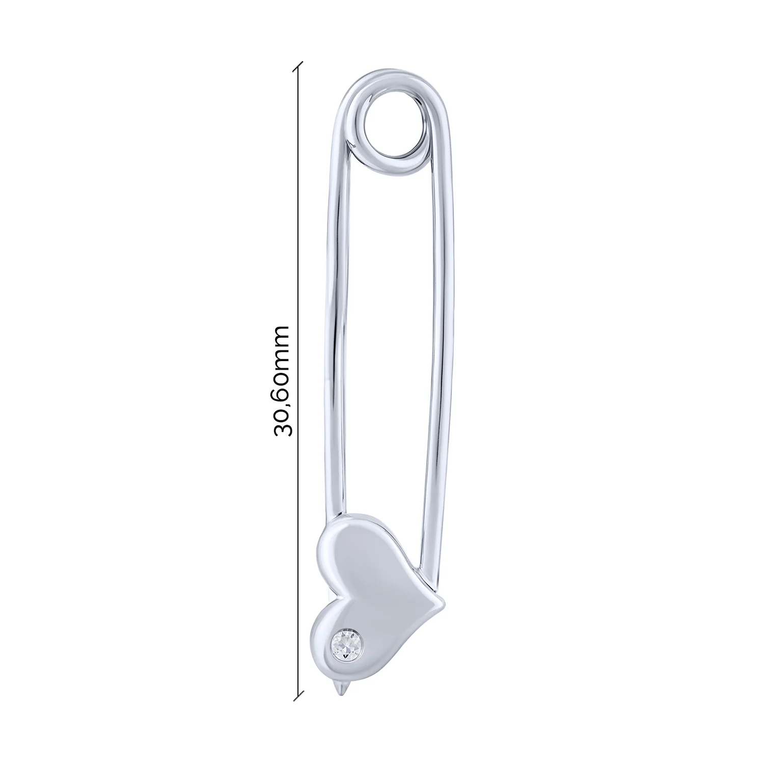 Серебряная булавка "Сердечко" с фианитом - 2101909