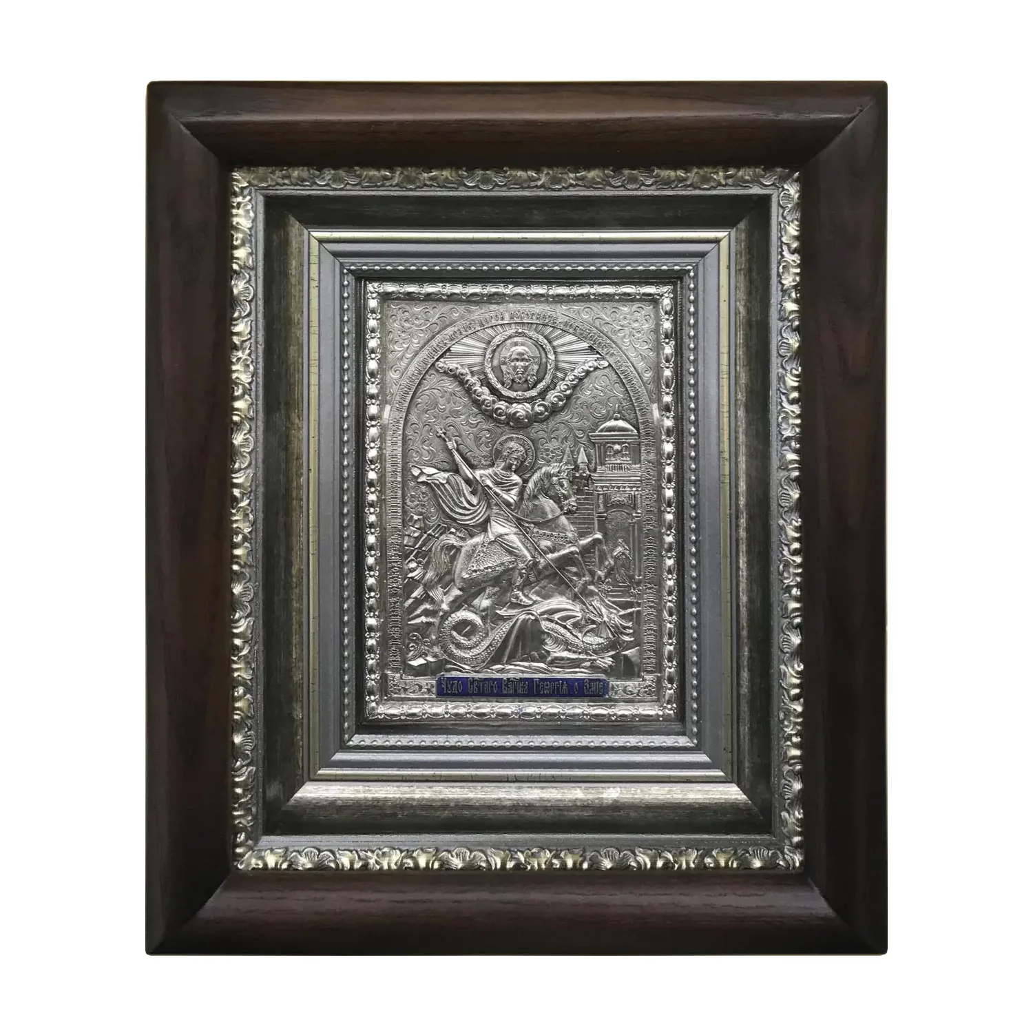 Икона из серебра "Покров Пресвятой Богородицы" в деревянной рамке - 1573171