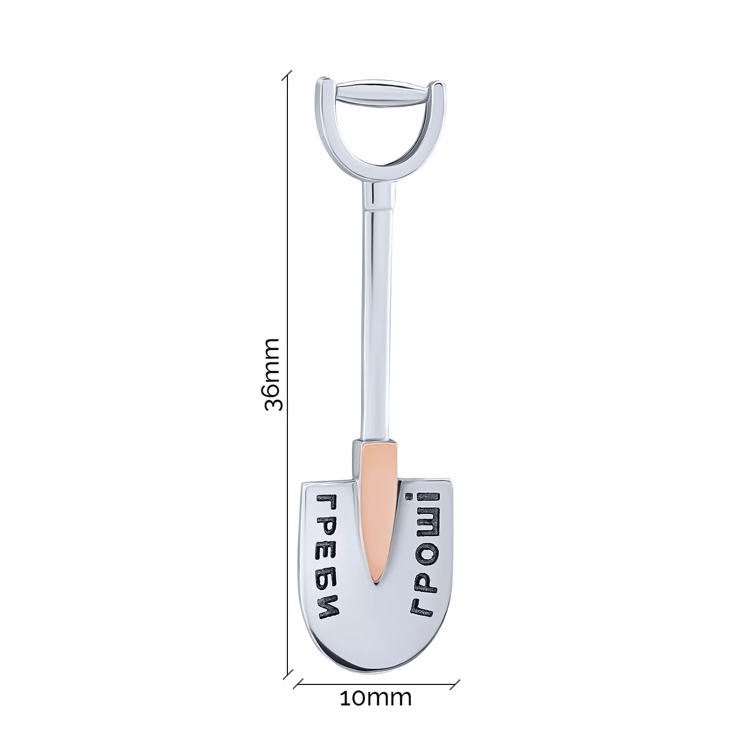 Серебряная лопата-талисман "Греби деньги" с позолотой и чернением - 2082071