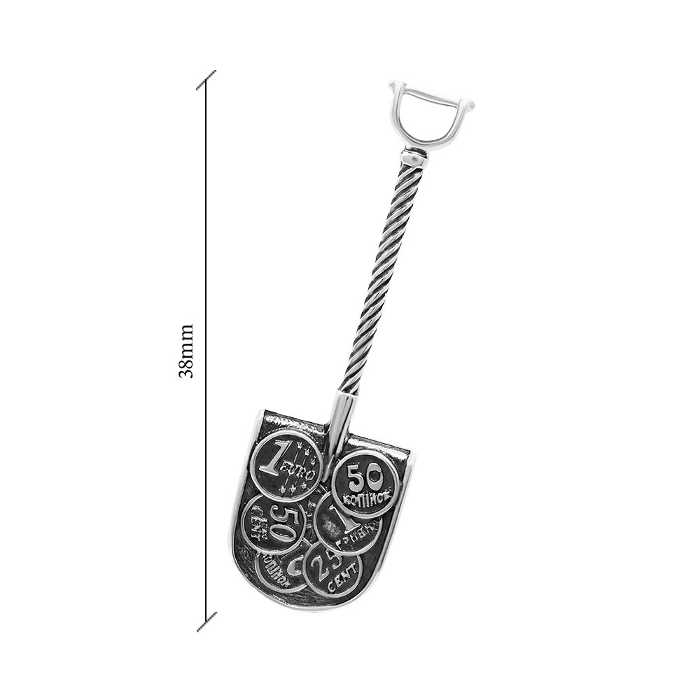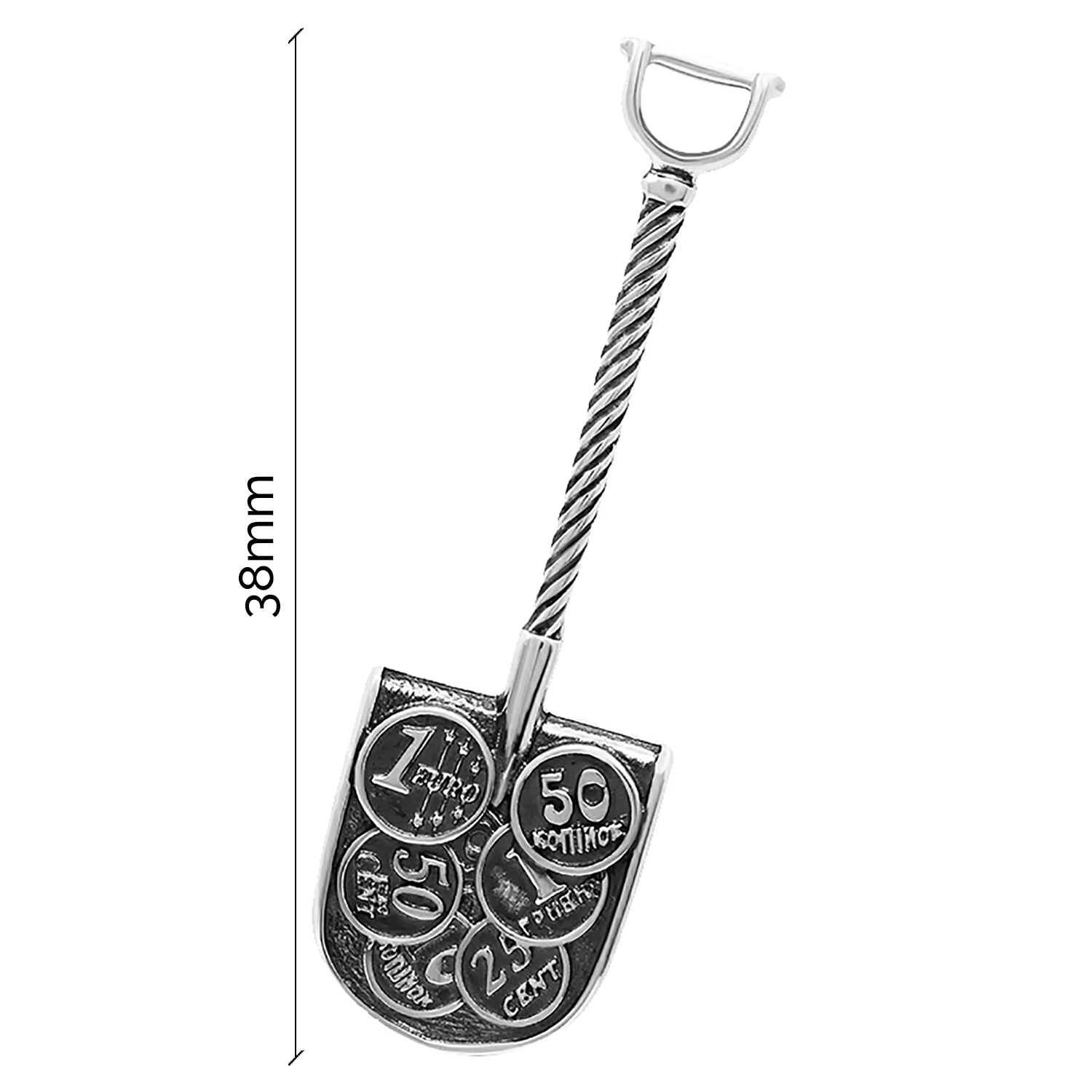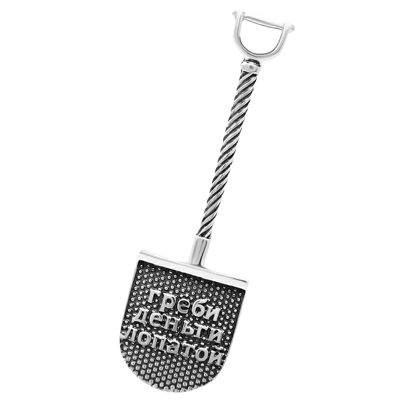 Серебряная лопата 925 пробы символизирует процветание и богатство. Изделие отличается изысканной и оригинальной формой. Украшено элементами в виде денежных знаков, символизирующими благополучие и достаток. Завитки на ручке означают витиеватость жизненных событий, которые в итоге приводят к богатству. Обратная часть дополнена словами «Греби деньги лопатой». Изысканный вид талисмана воплощает силу и энергию финансово независимого человека. Украшение станет отличным презентом ко дню рождения как для ребенка, так и любого близкого человека.