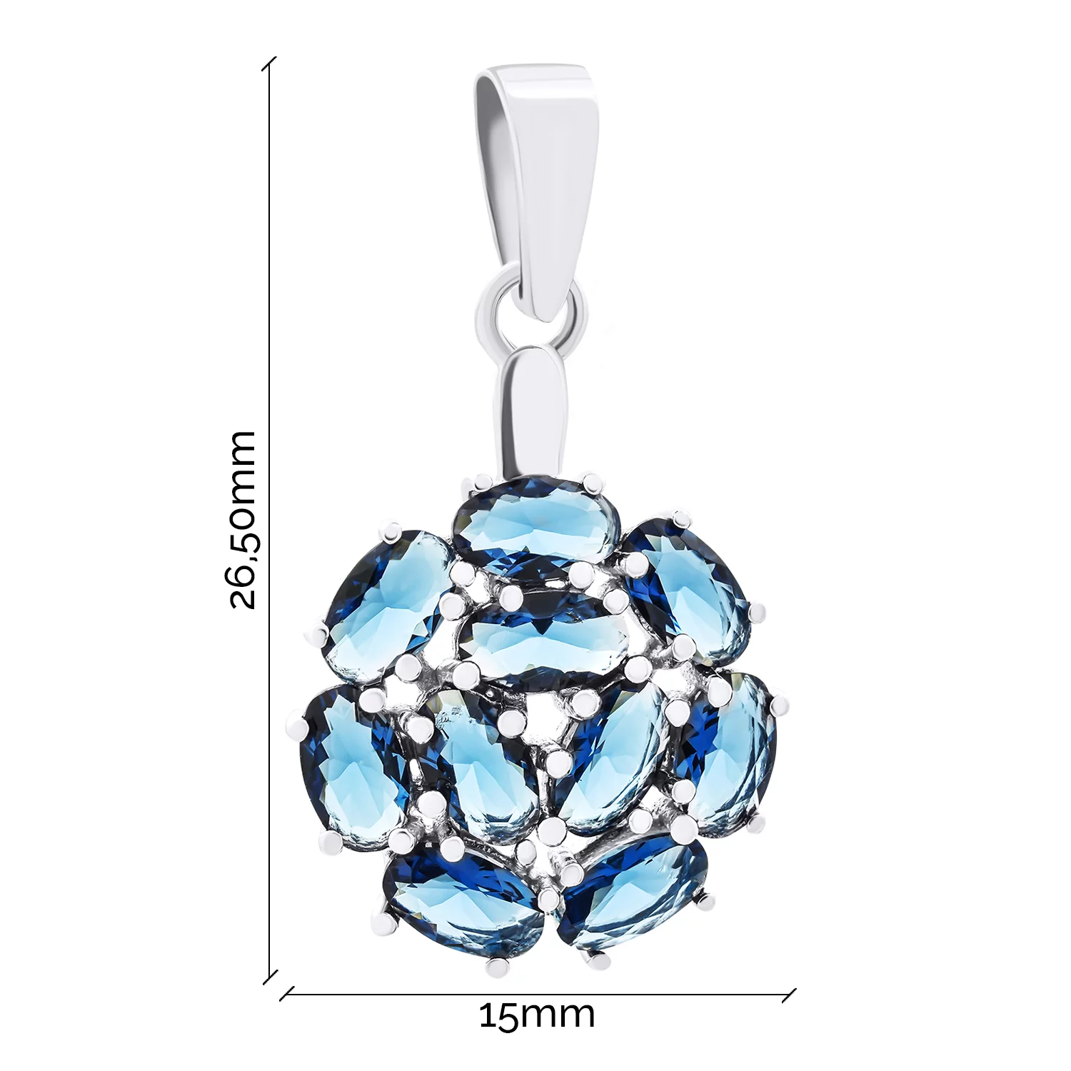 Серебряный подвес с голубыми и желтыми фианитами "Тризуб-Герб Украины" - 1483771