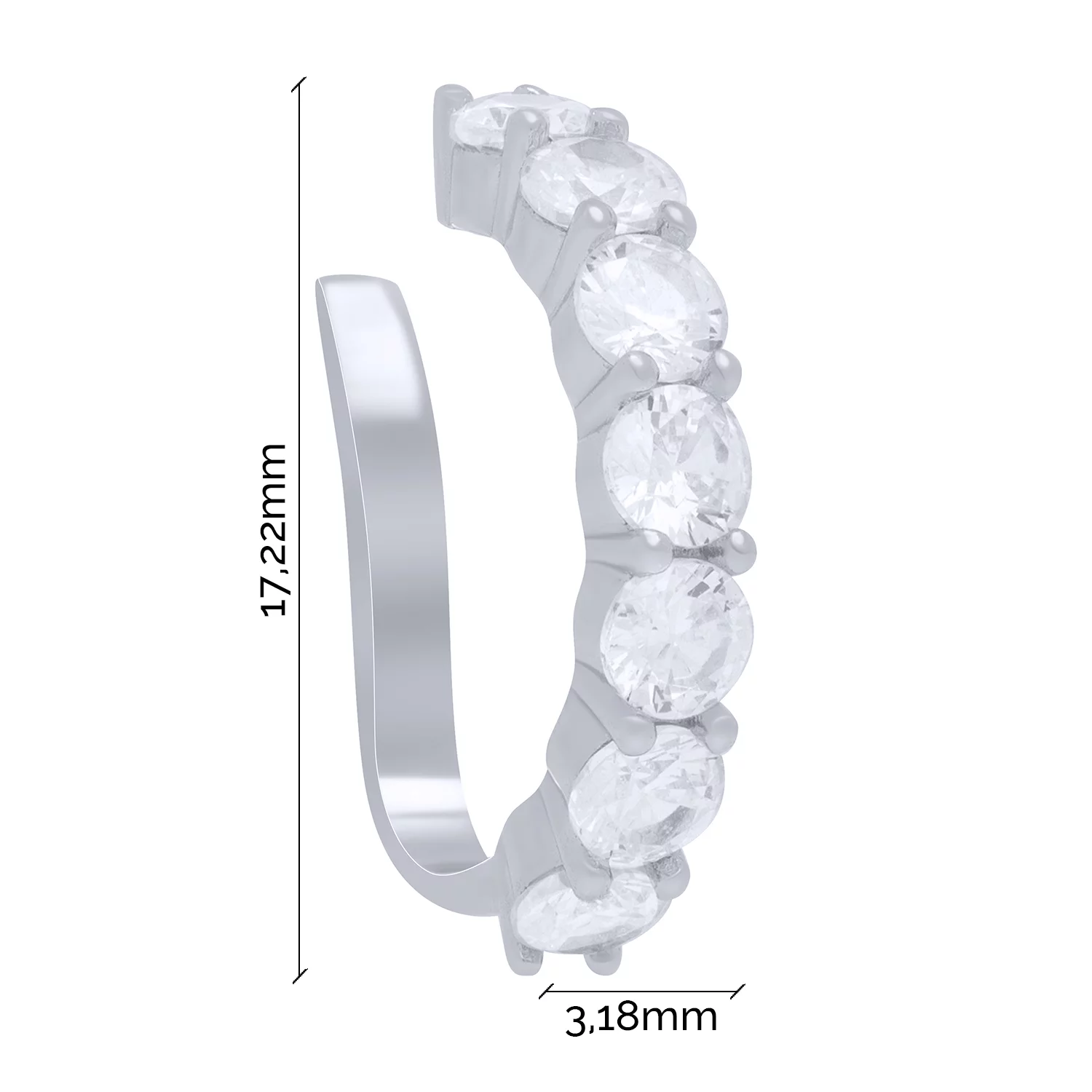 Серебряная серьга-каффа с дорожкой фианитов - 1701775
