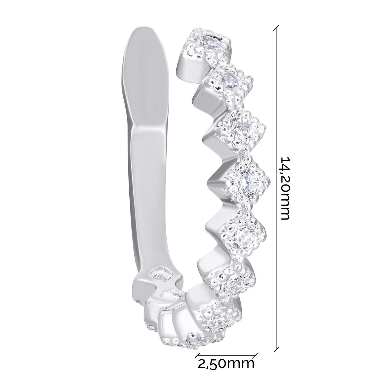 Серебряная моносерьга-каффа с фианитами - 1535079