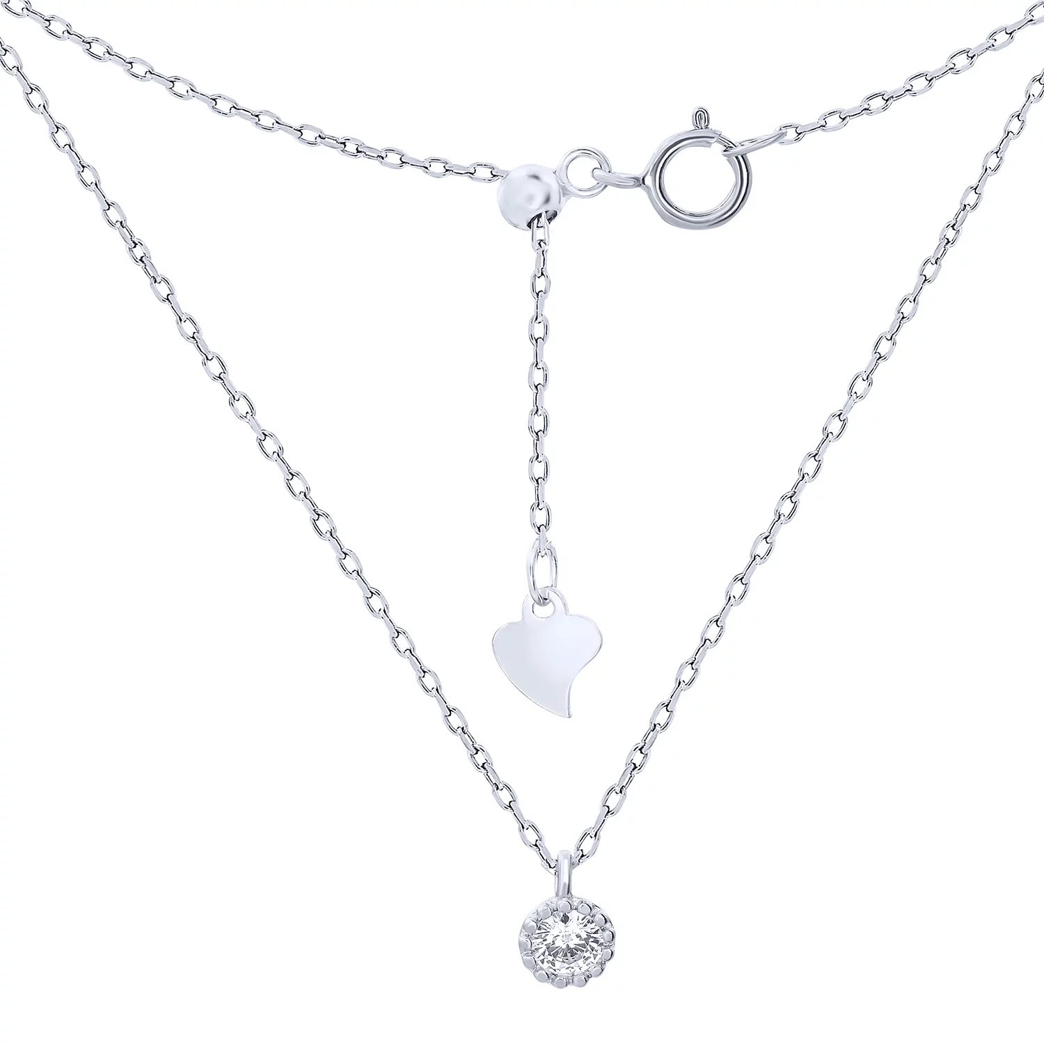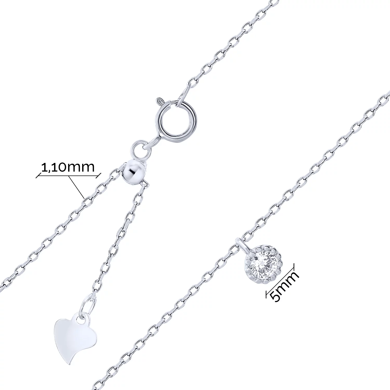 Цепочка с подвеской из белого золота с фианитом якорное плетение - 1688549