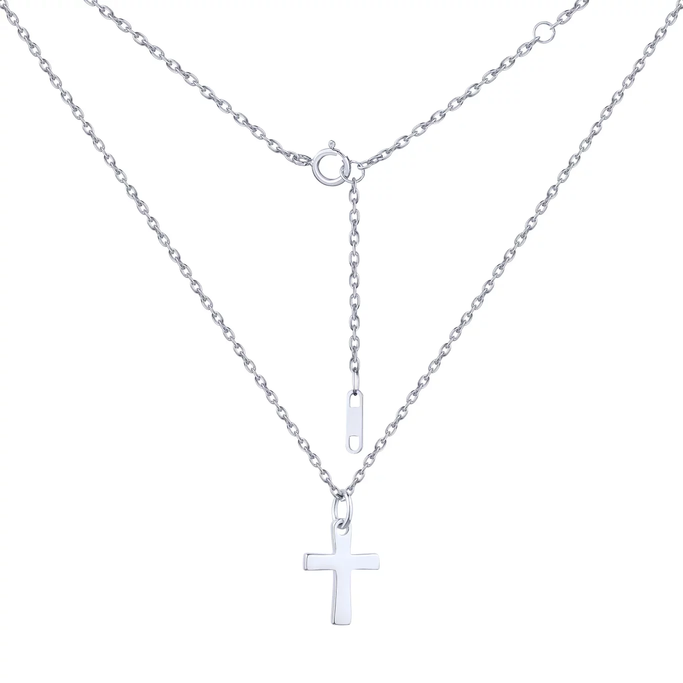 Элегантная цепочка с подвесом "Крестик" в серебре с якорным плетением - 1933419