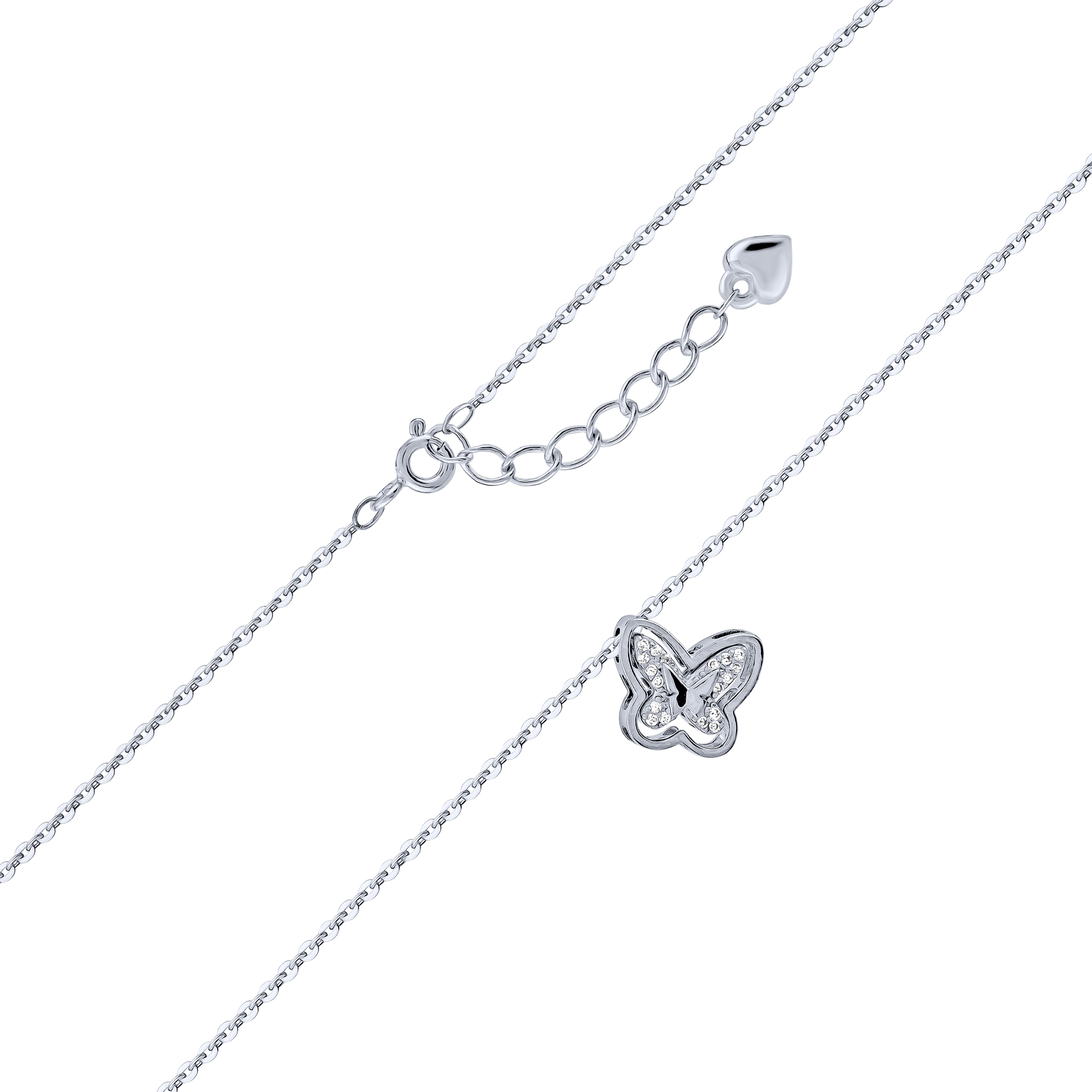 Серебряная цепочка с подвесом "Бабочка" и фианитами плетение якорь - 2162622