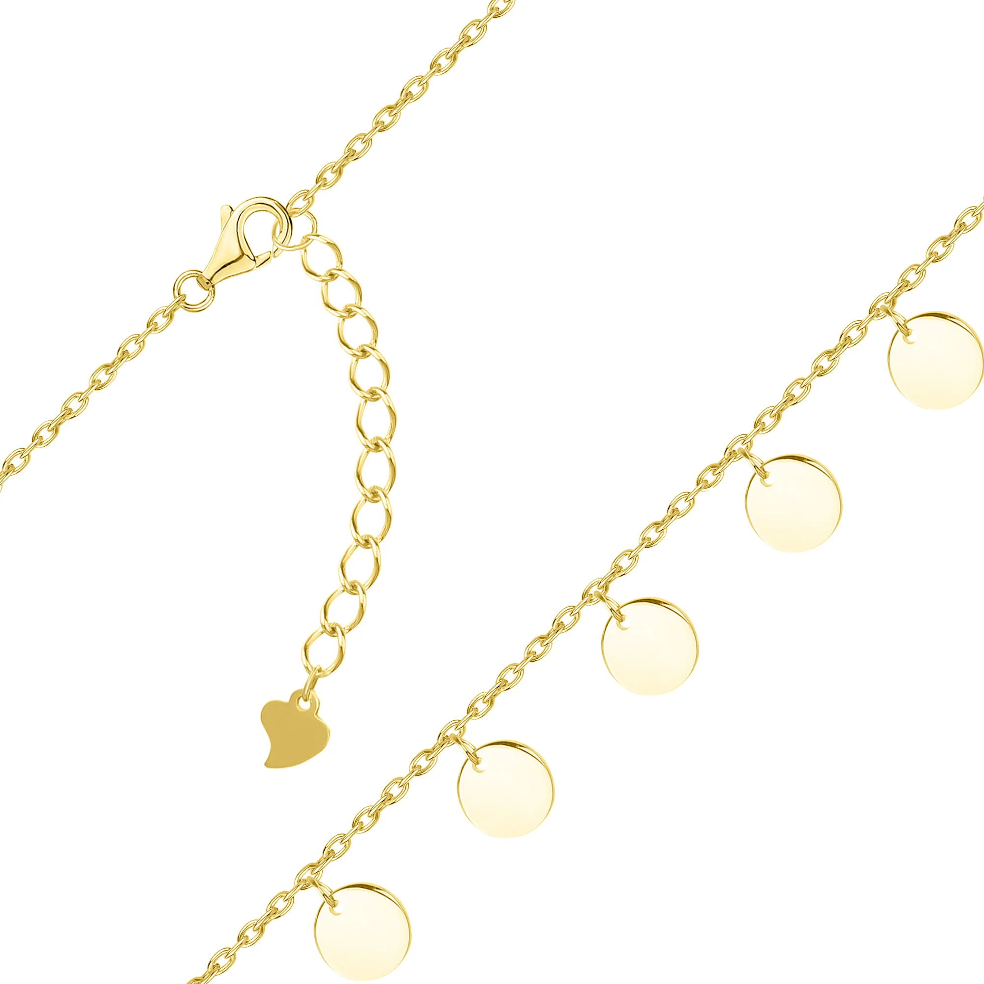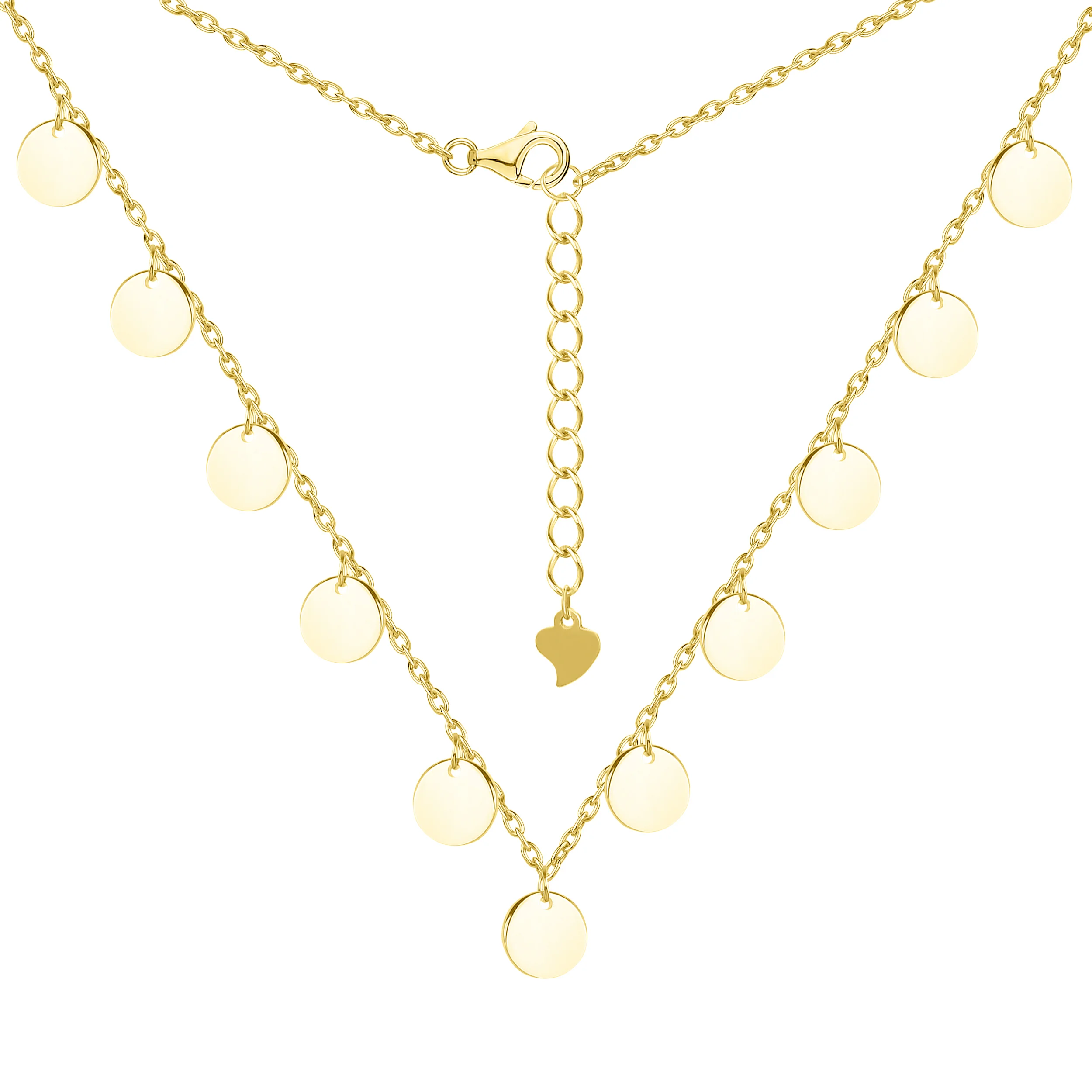 Серебрянное колье с подвесами "Монеты" с подвесами в желтом родировании с якорным плетением - 2002155