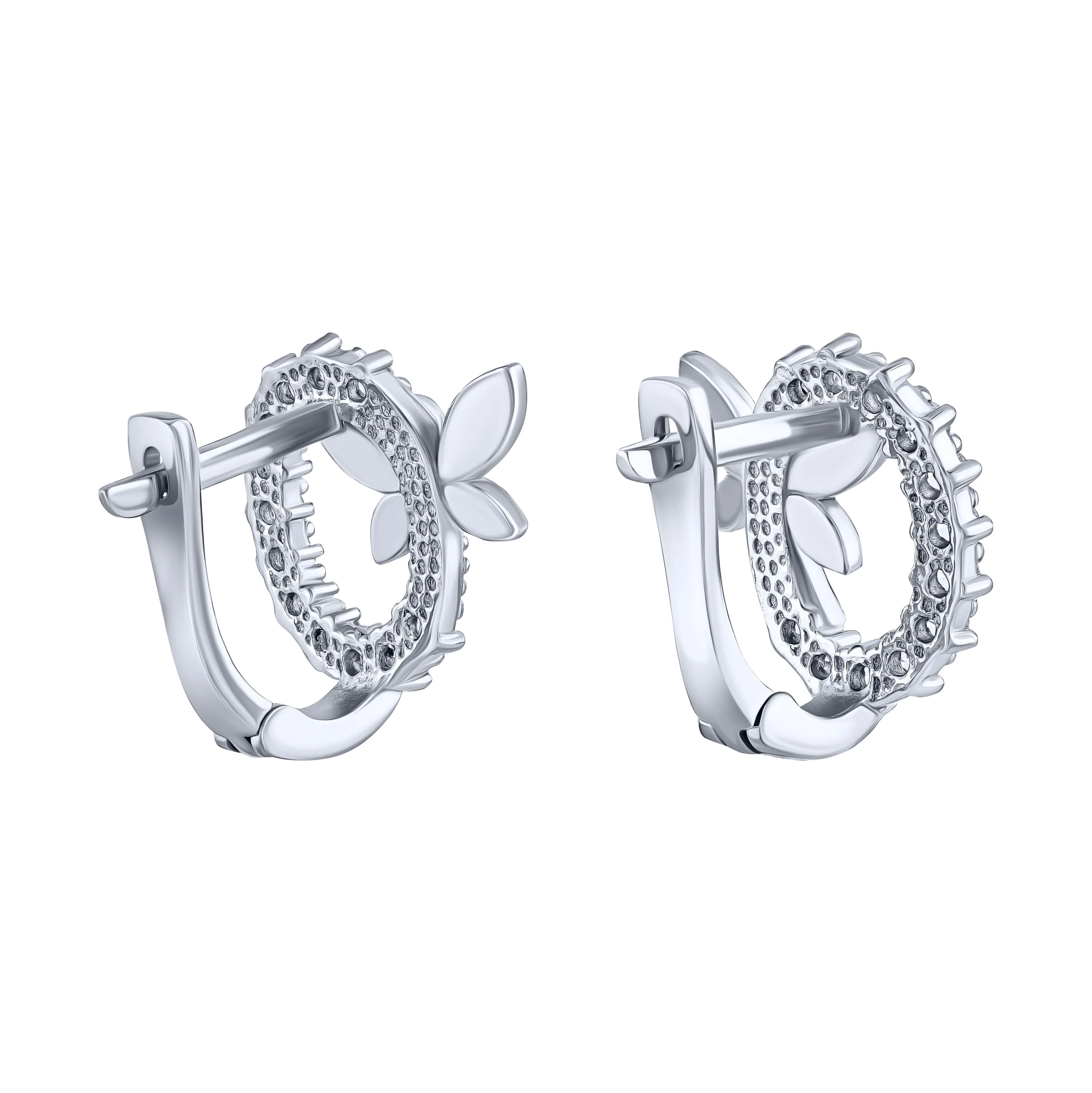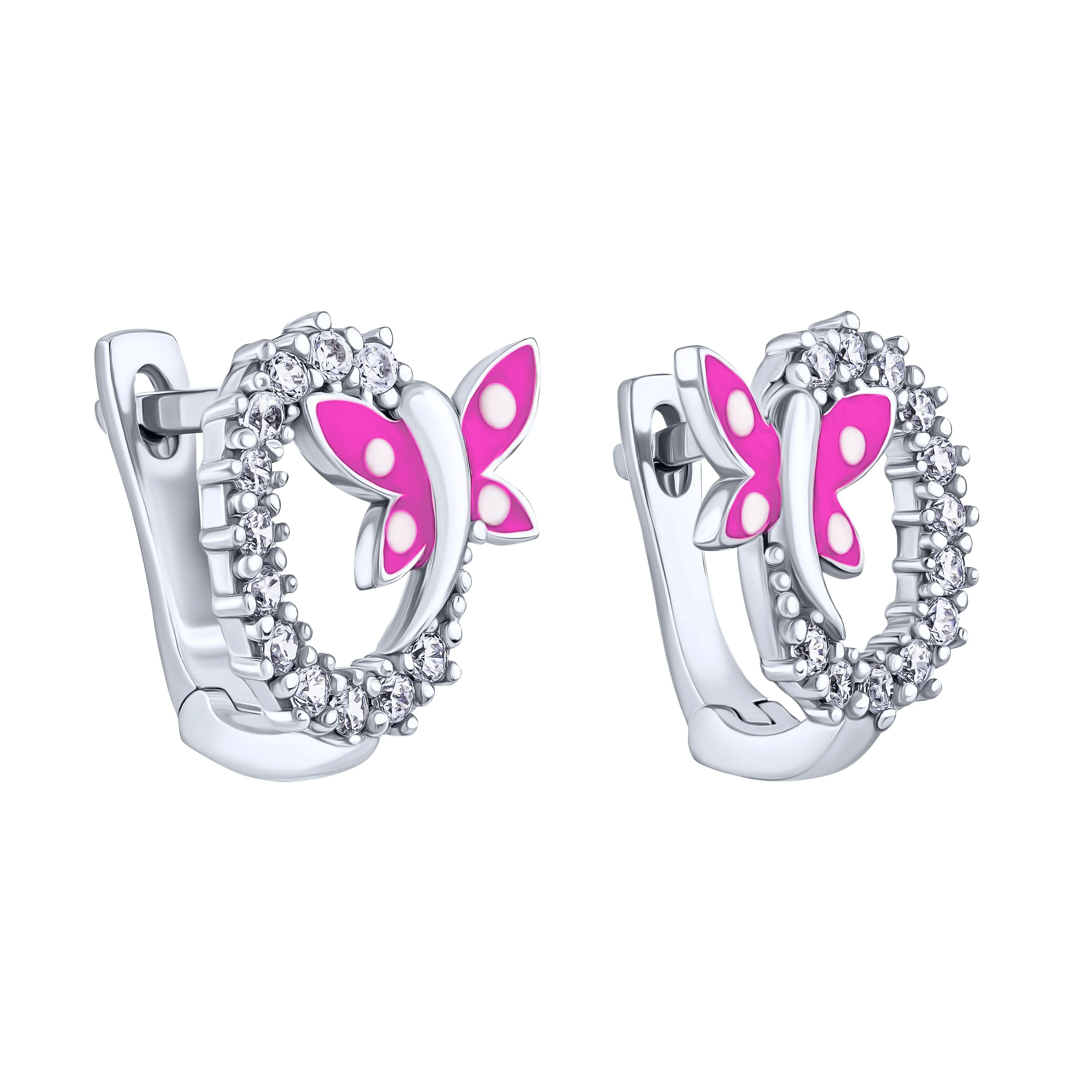 Серебрянные сережки "Бабочки" с фианитами и розовой эмалью - 2001992
