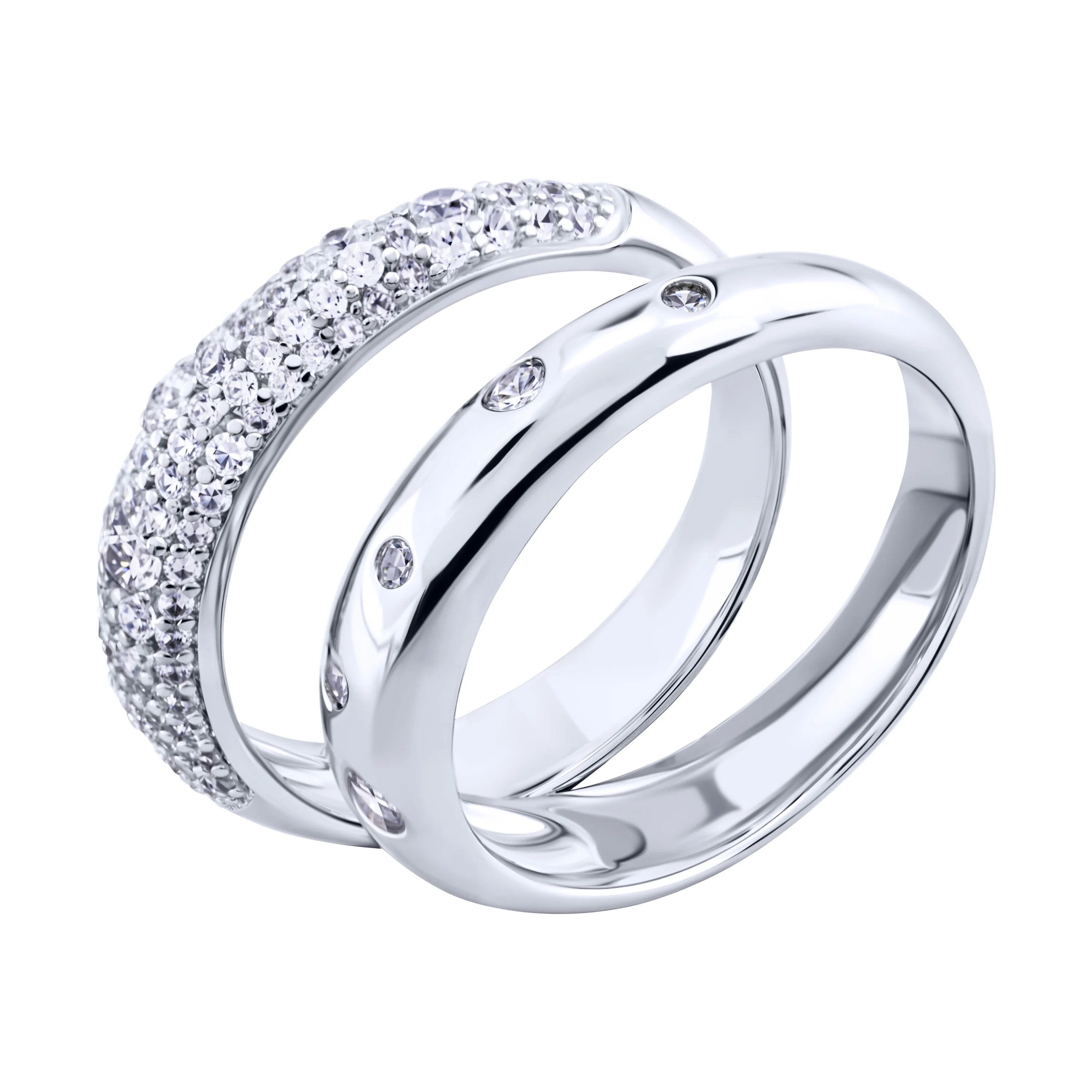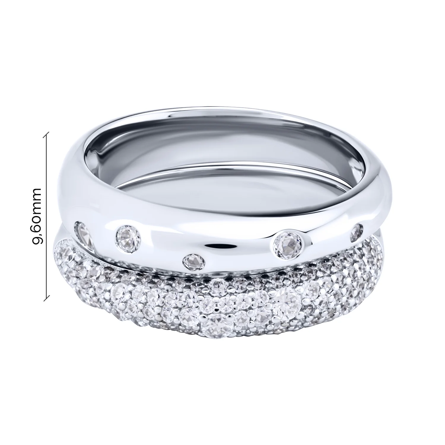 Серебряное двойное кольцо 2 в 1 с фианитами - 2091905