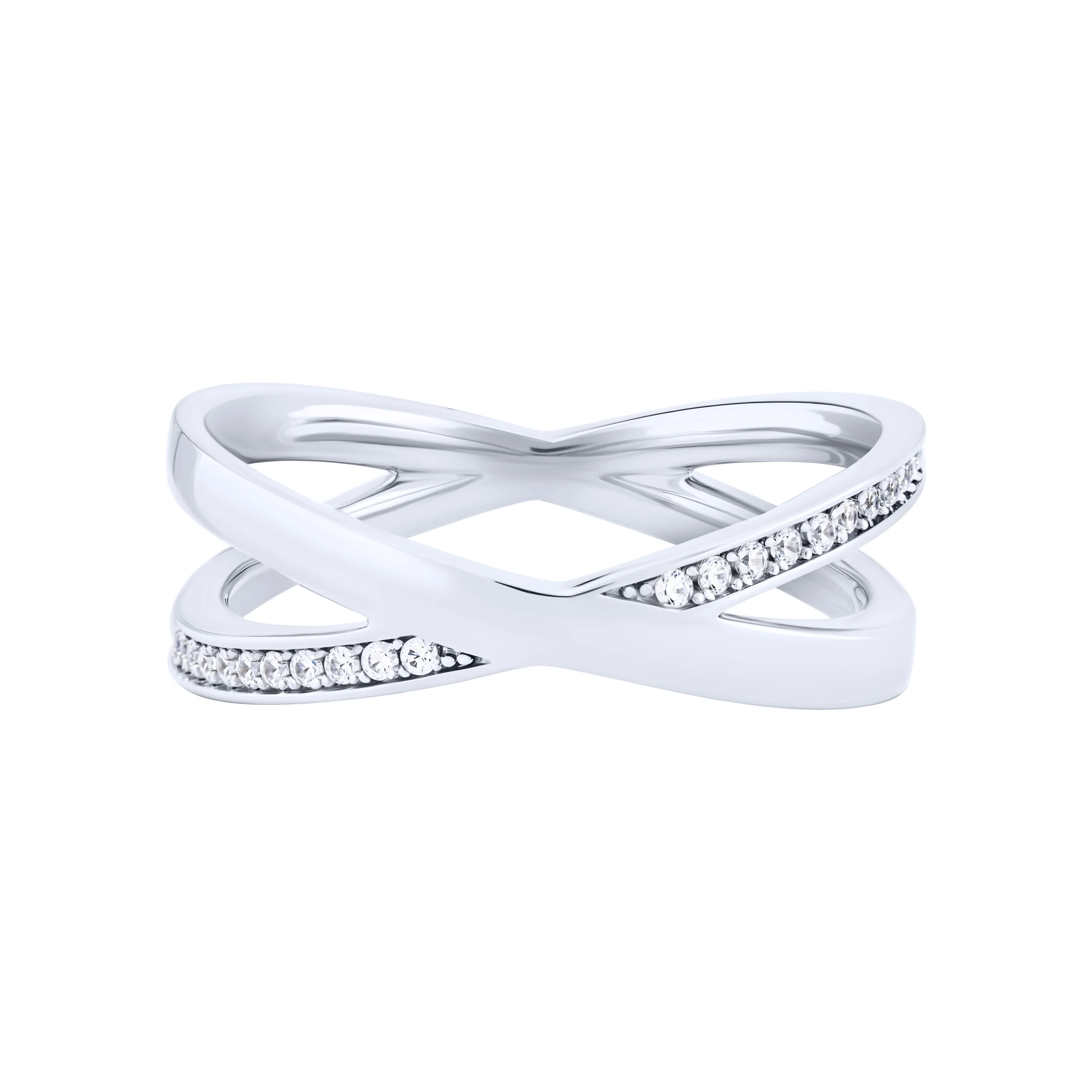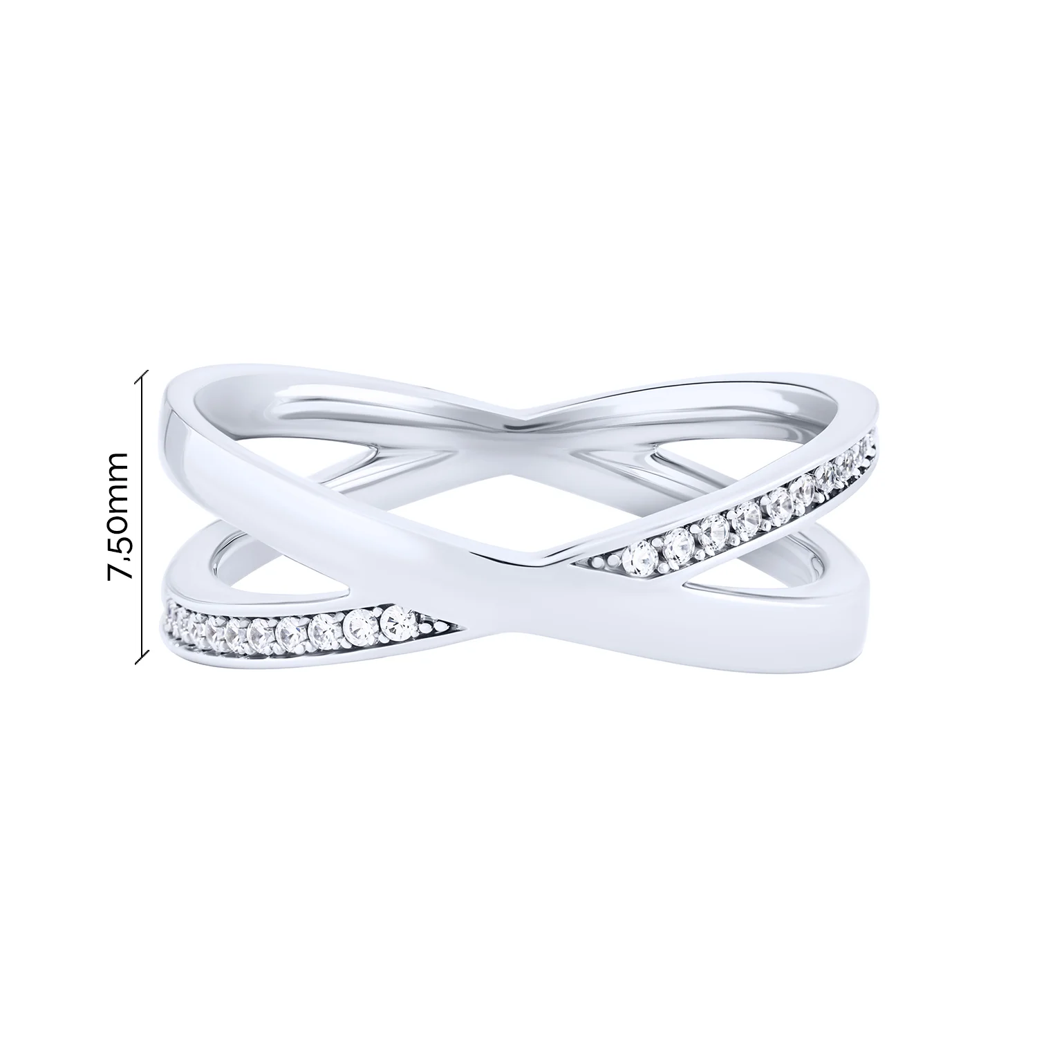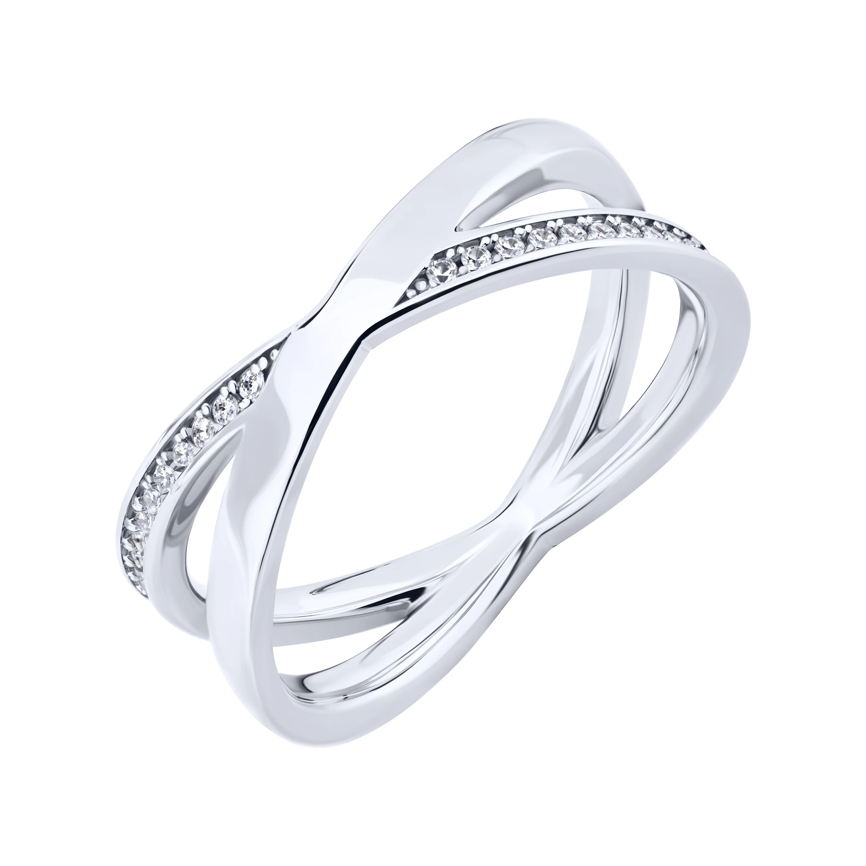 Серебряное двойное кольцо "Переплетение" с фианитами - 2090361