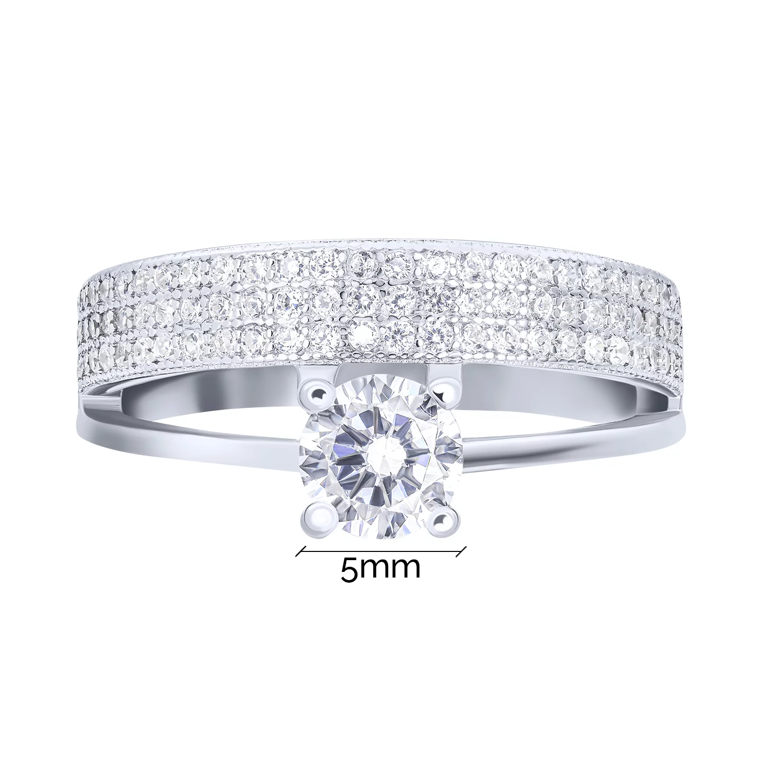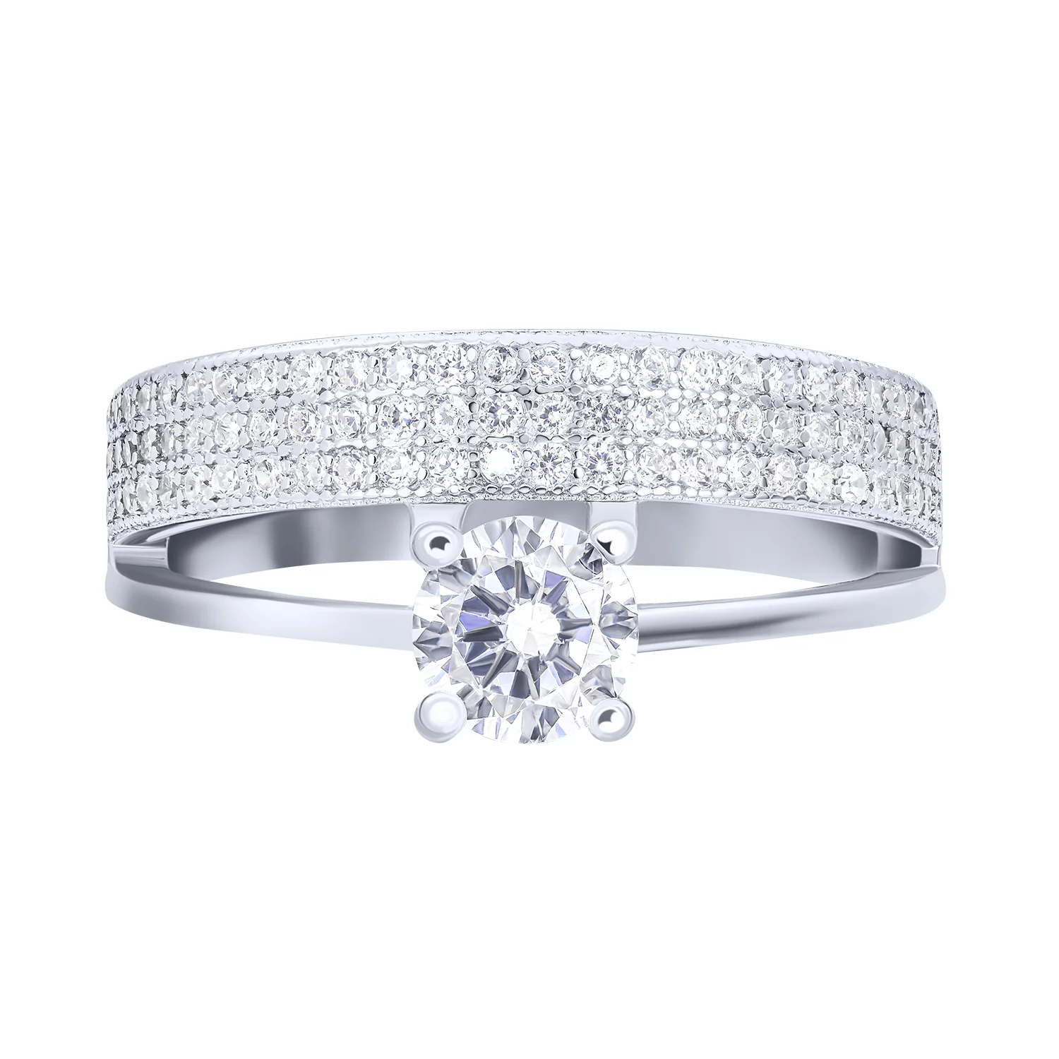 Серебряное двойное кольцо с россыпью фианитов - 1611421