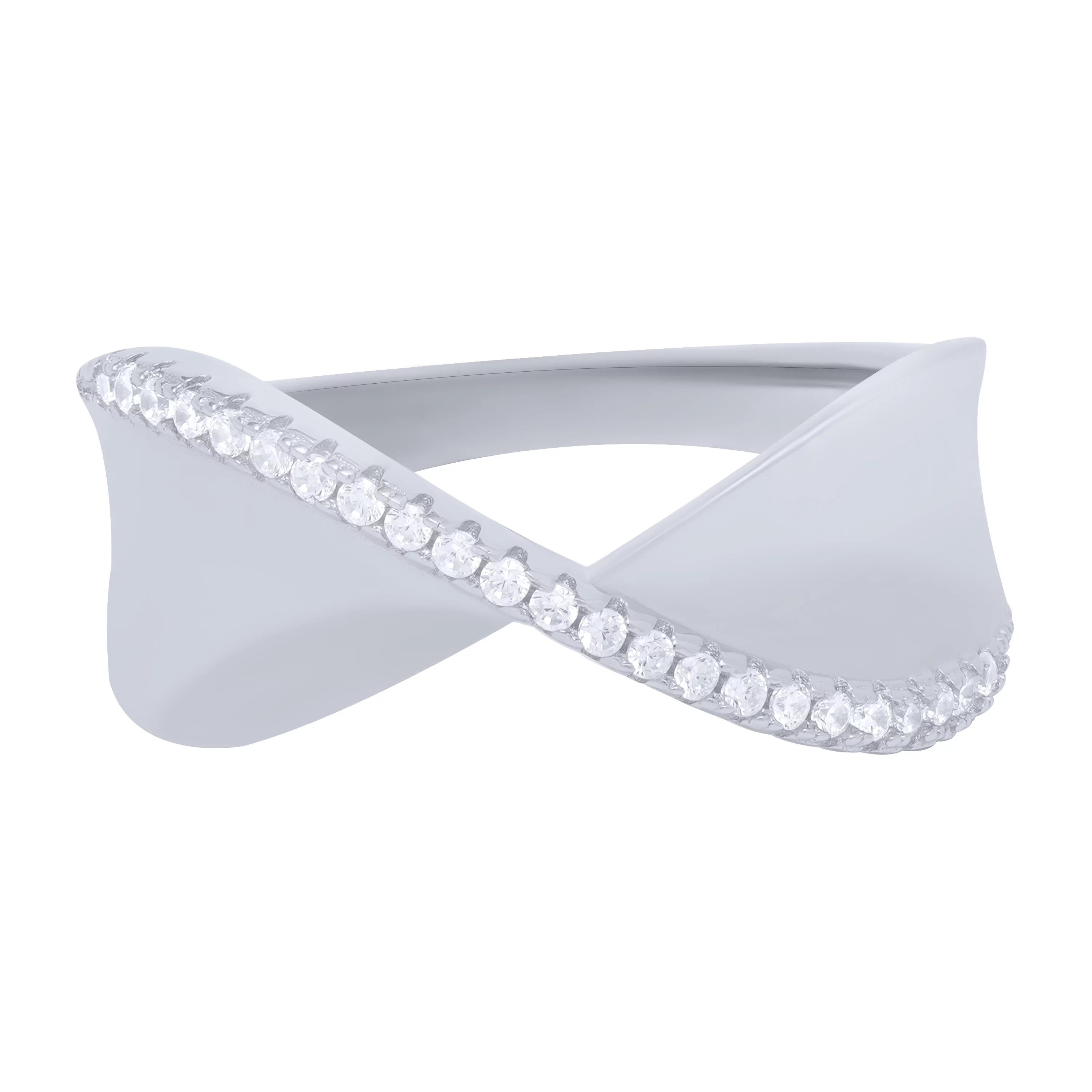 Серебряное фигурное кольцо с дорожкой фианитов - 1682991