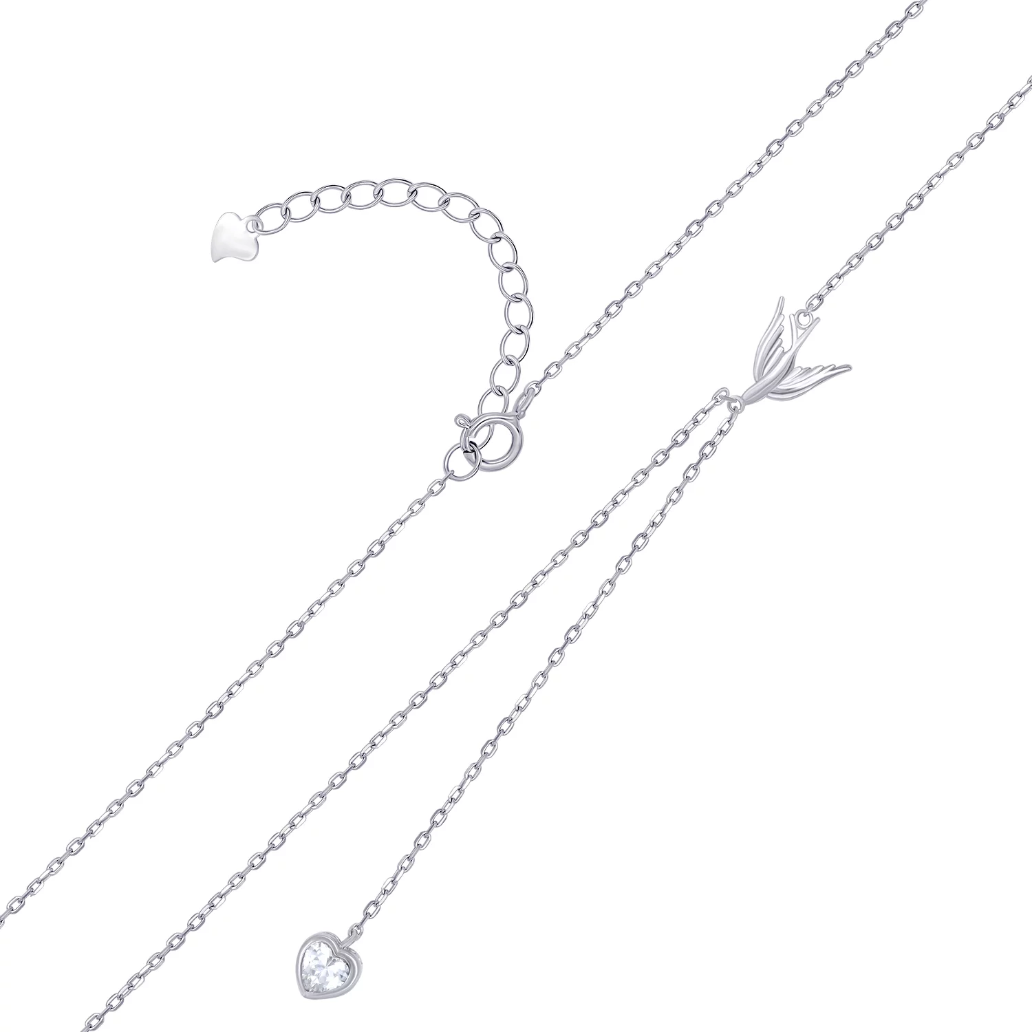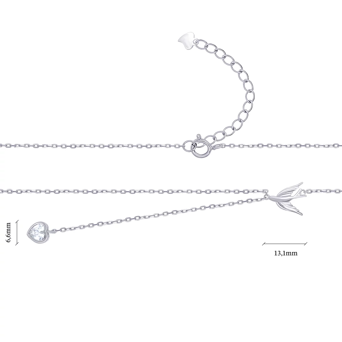 Цепочка серебряная с подвесными сердечком и крестиком с фианитами и перламутром плетение якорь - 1612969