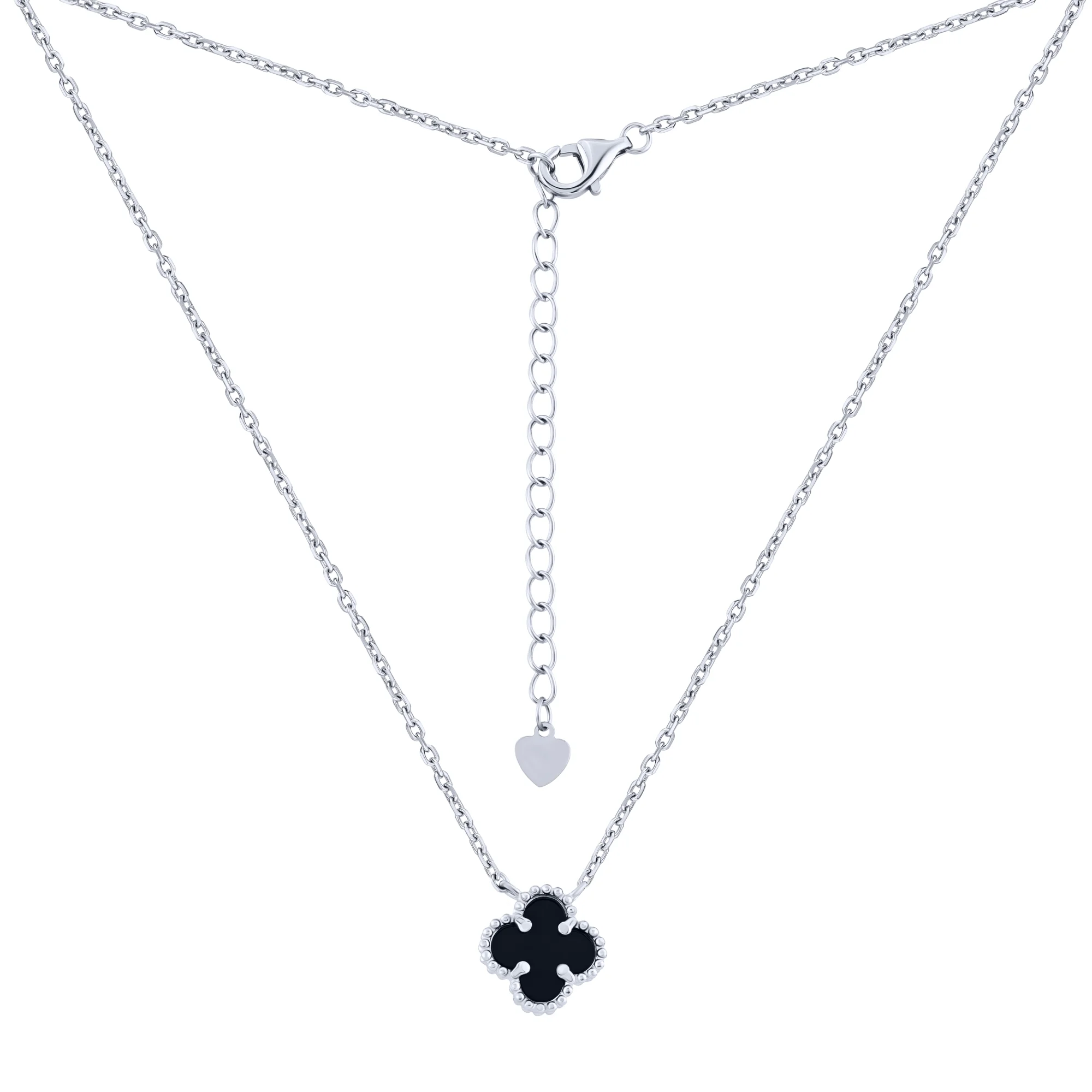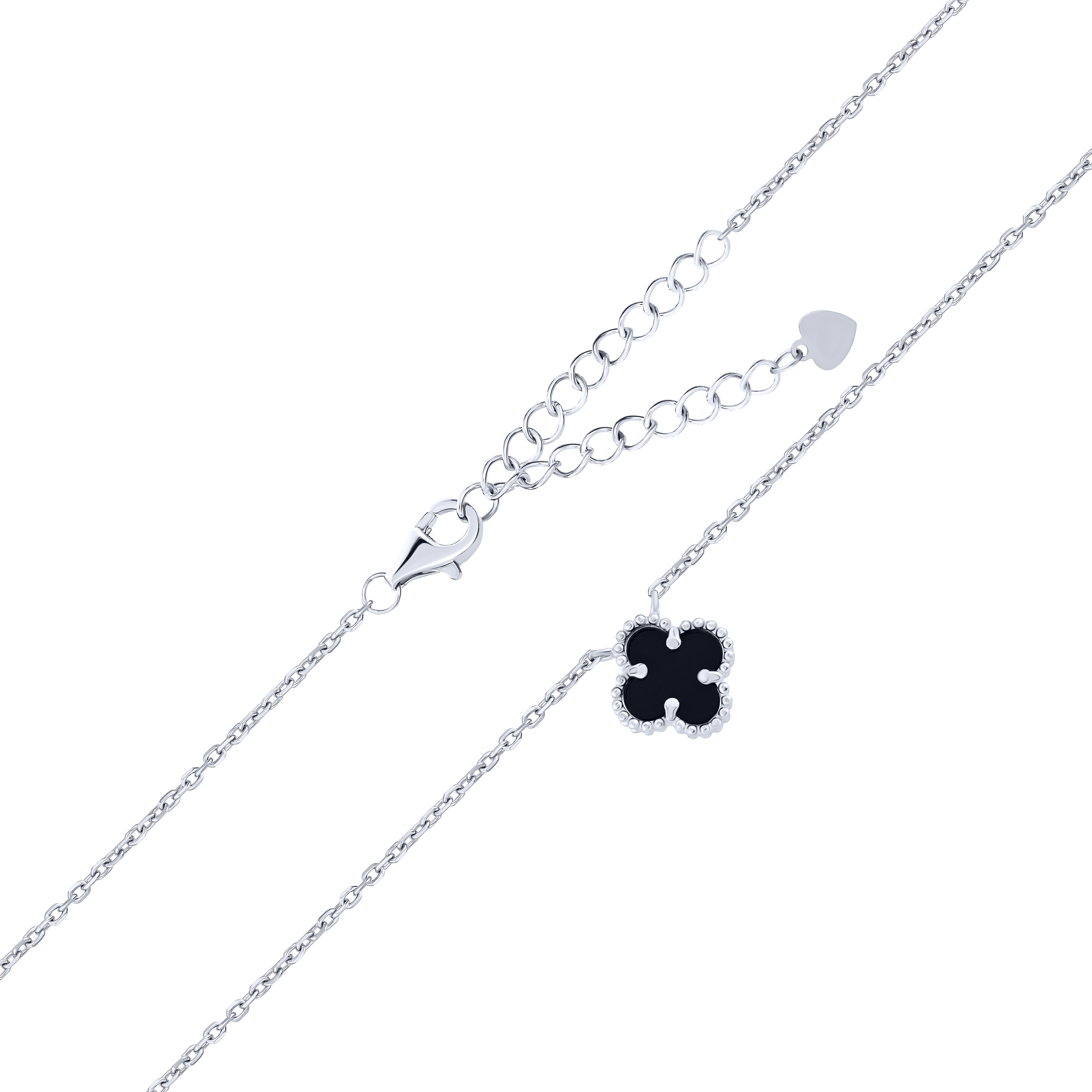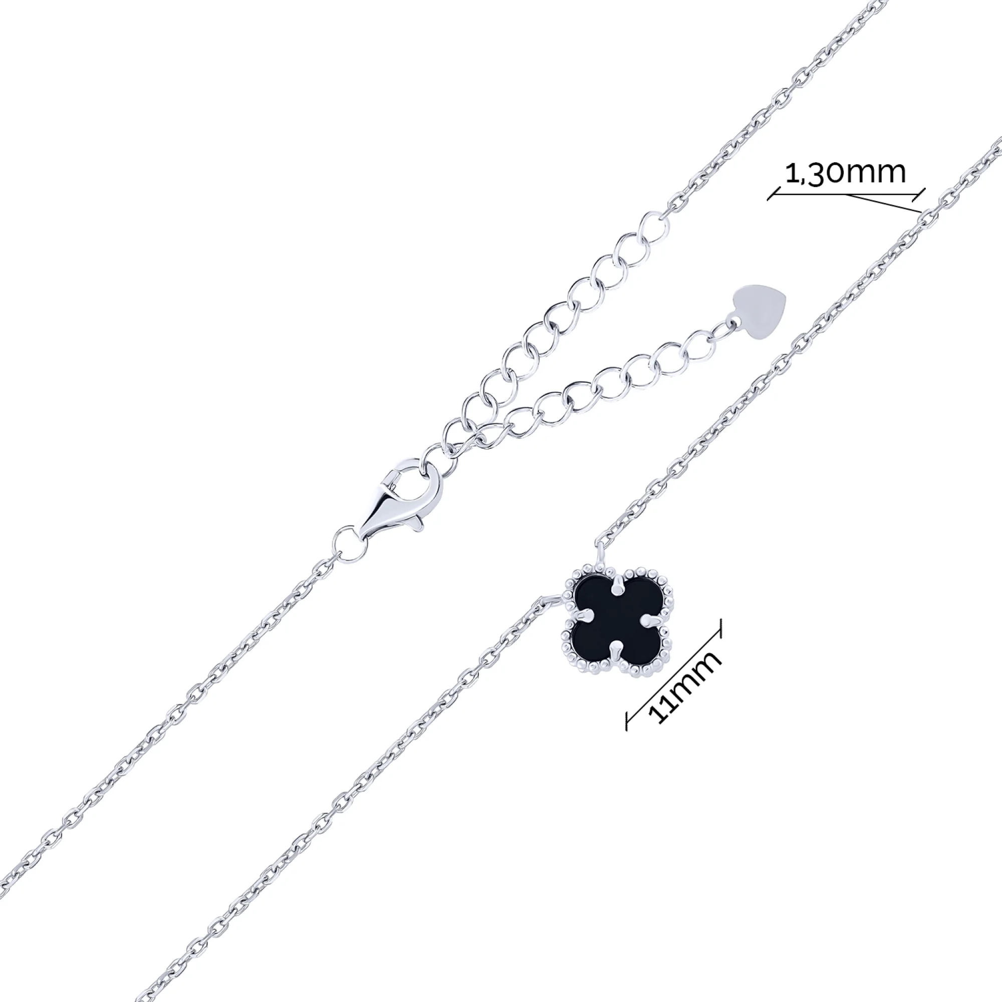 Серебряное кольє с подвесом "Клевер" с ониксом якорное плетение - 1822877