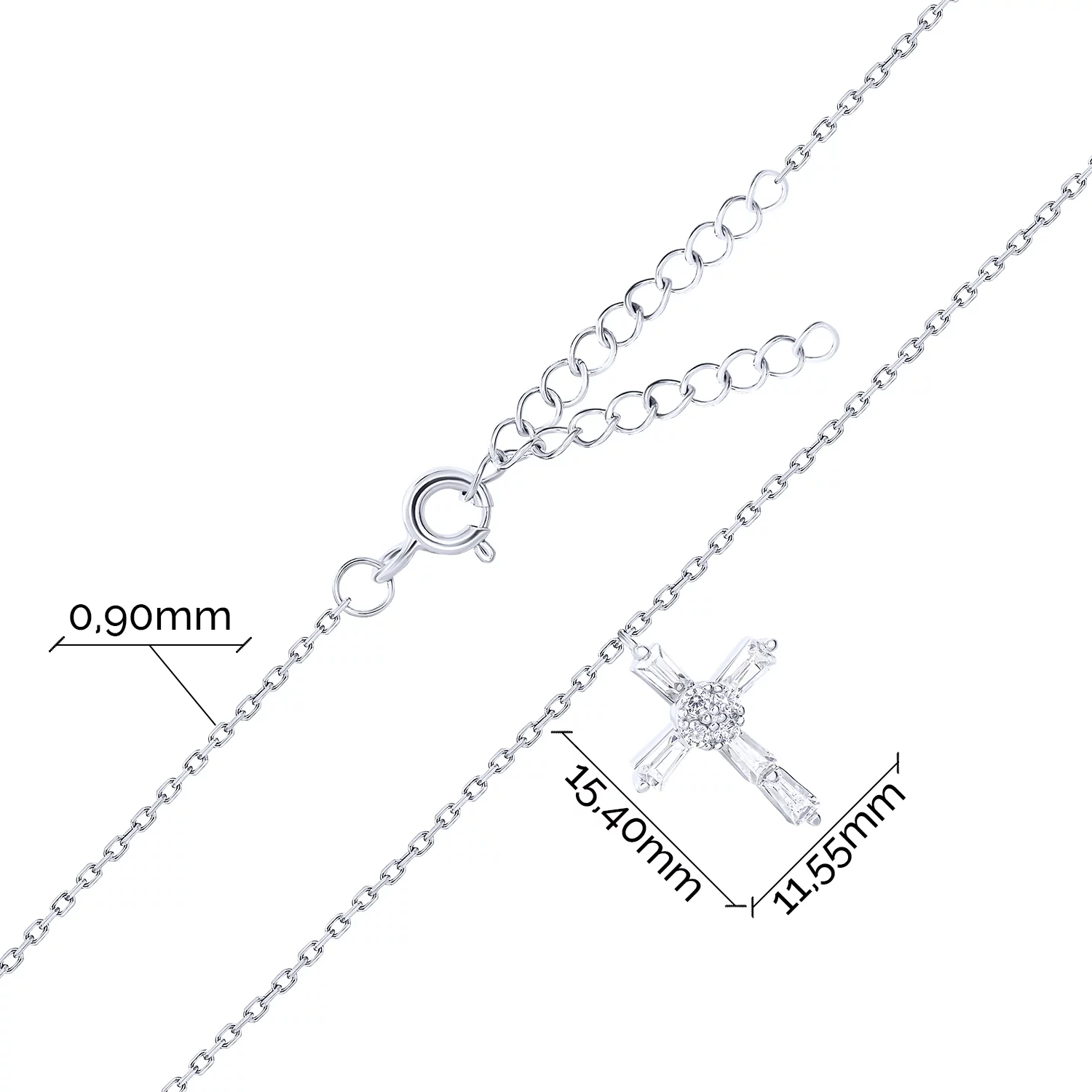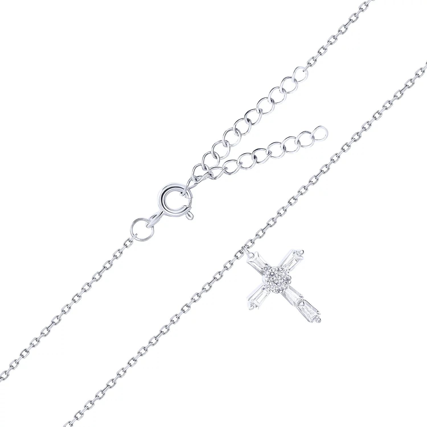 Цепочка с подвесом из серебра "Крестик" с фианитами плетение якорь - 1820130