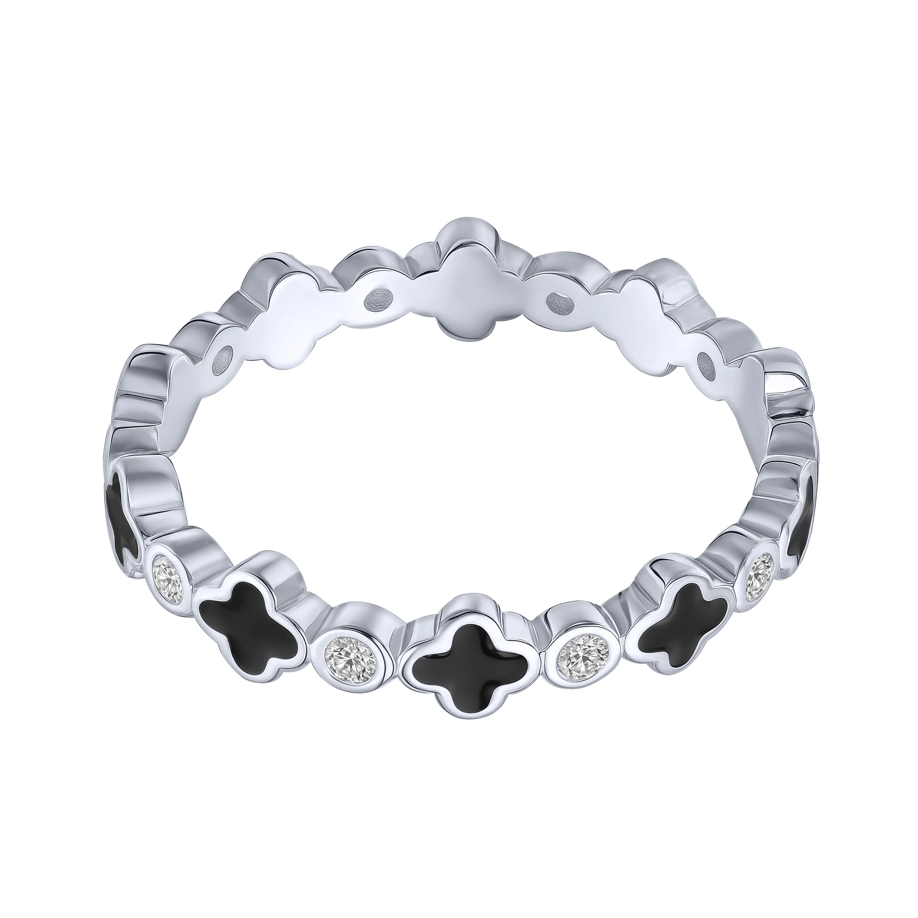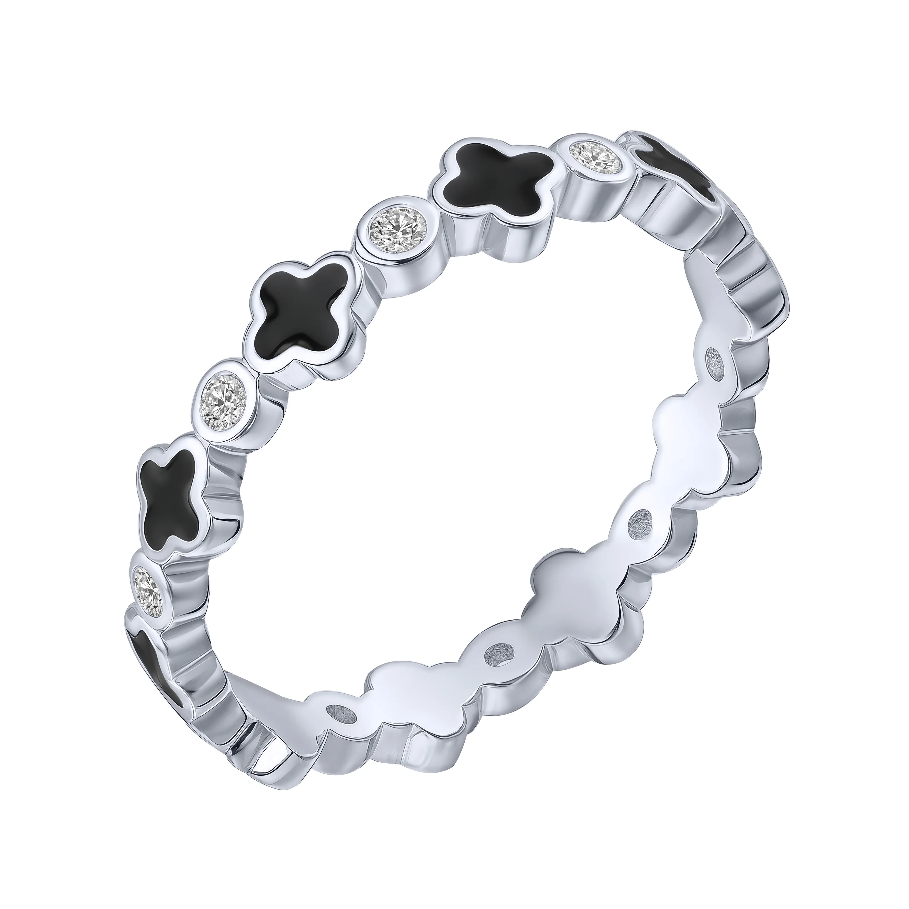 Серебряное кольцо "Клевер" с фианитами и эмаллю - 2187014
