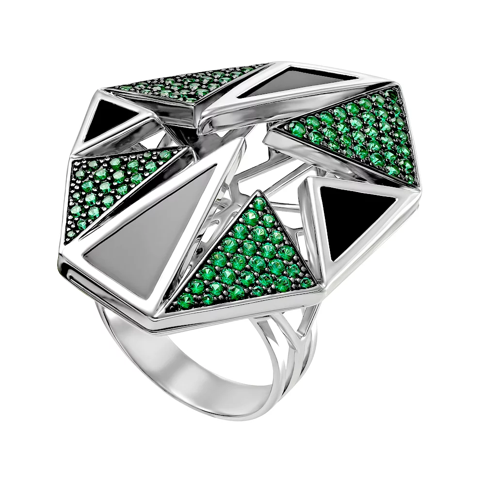 Серебряное кольцо с агатом и фианитами "Геометрия" - 1535929