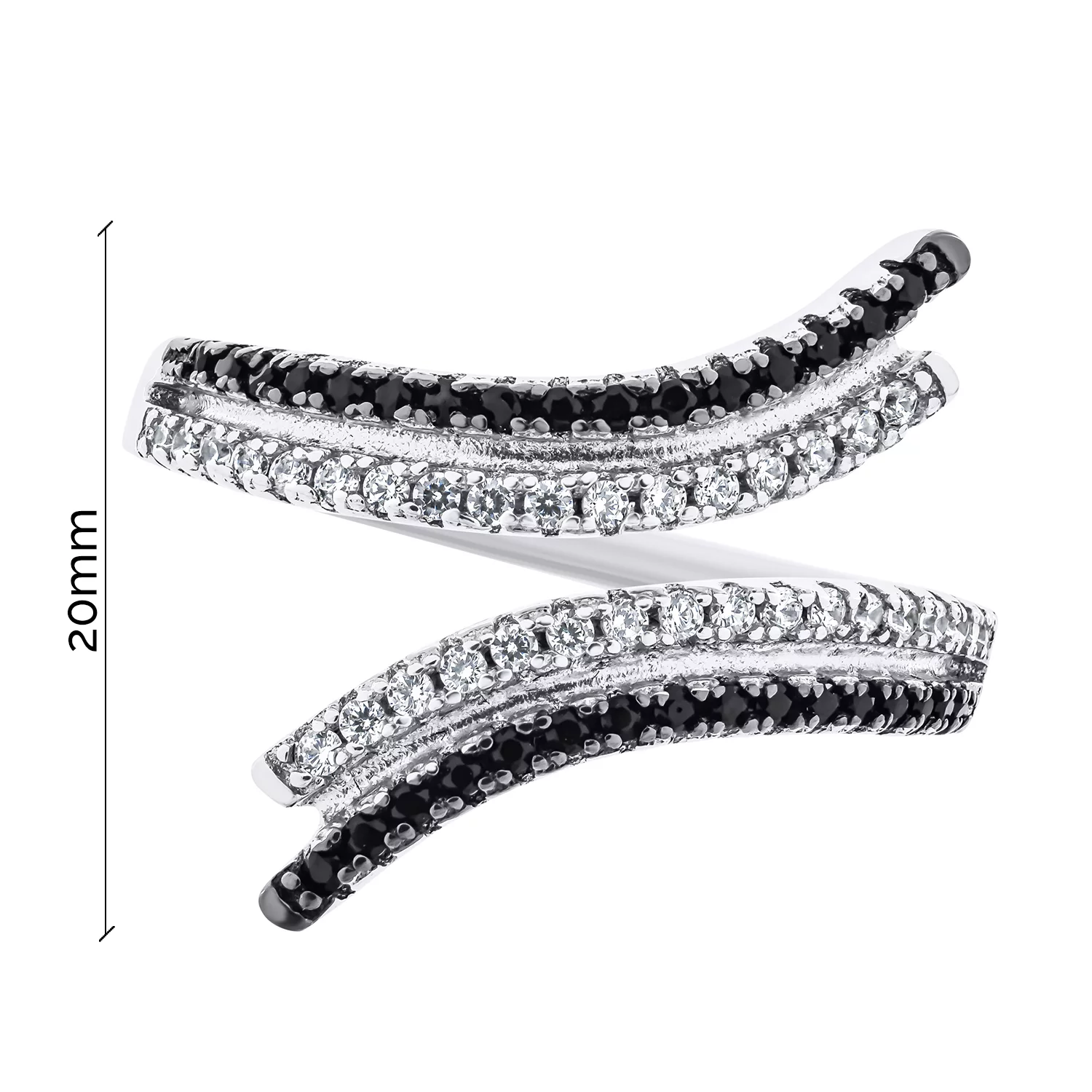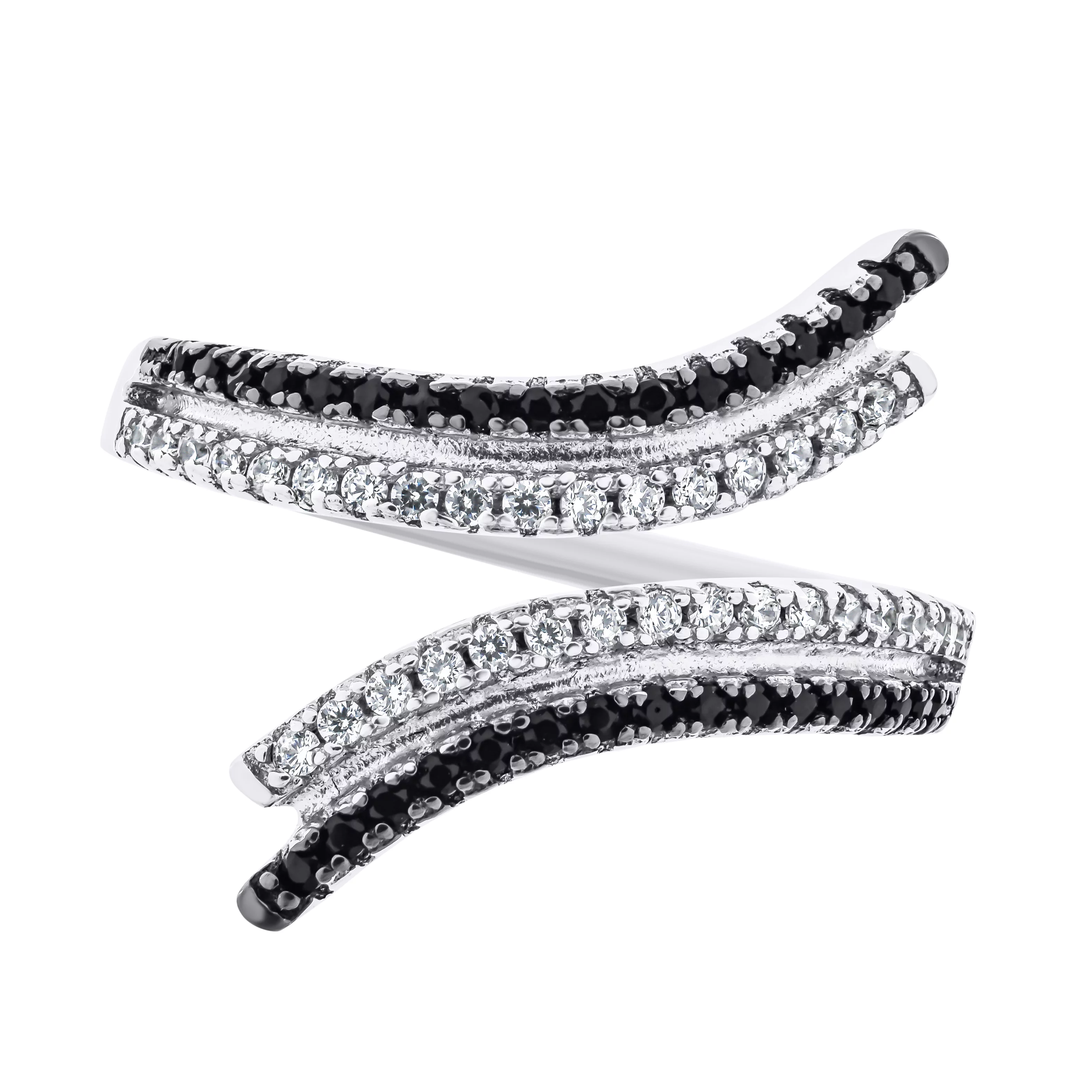 Серебряное незамкнутое кольцо с фианитами - 1528921