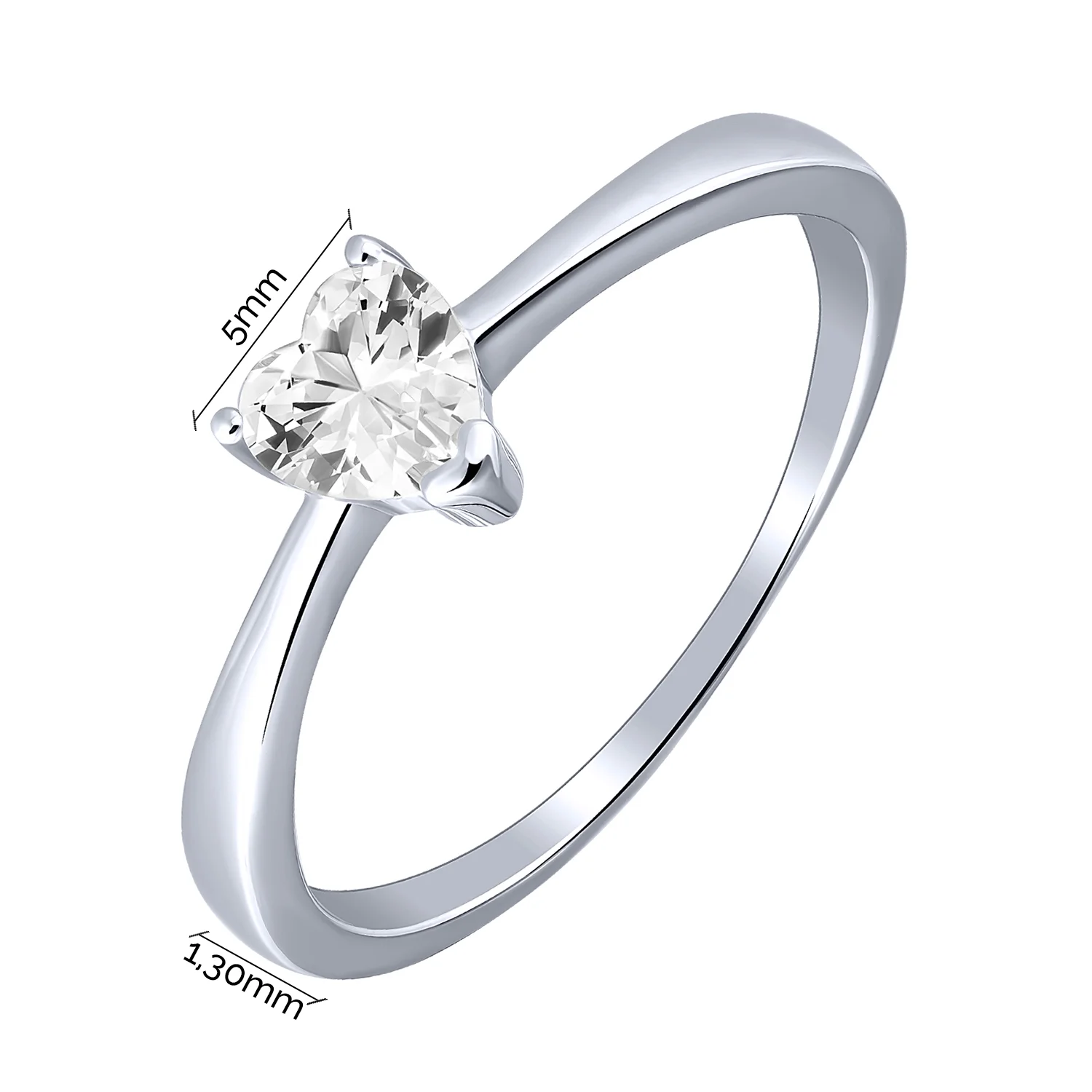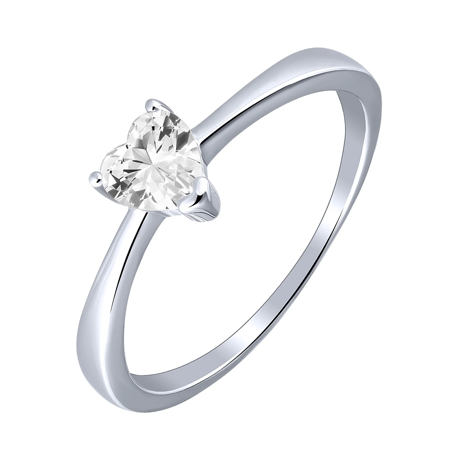 Серебряное кольцо "Сердце" с фианитом - 2159235