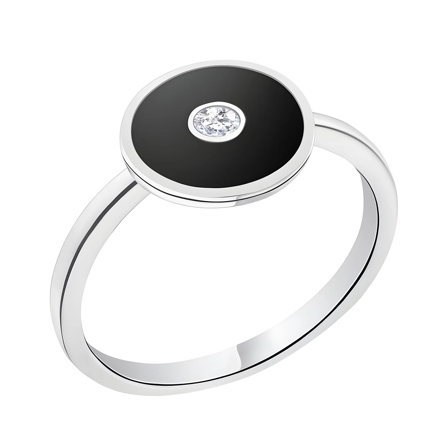 Серебряное кольцо с фианитом и эмалью - 1514659