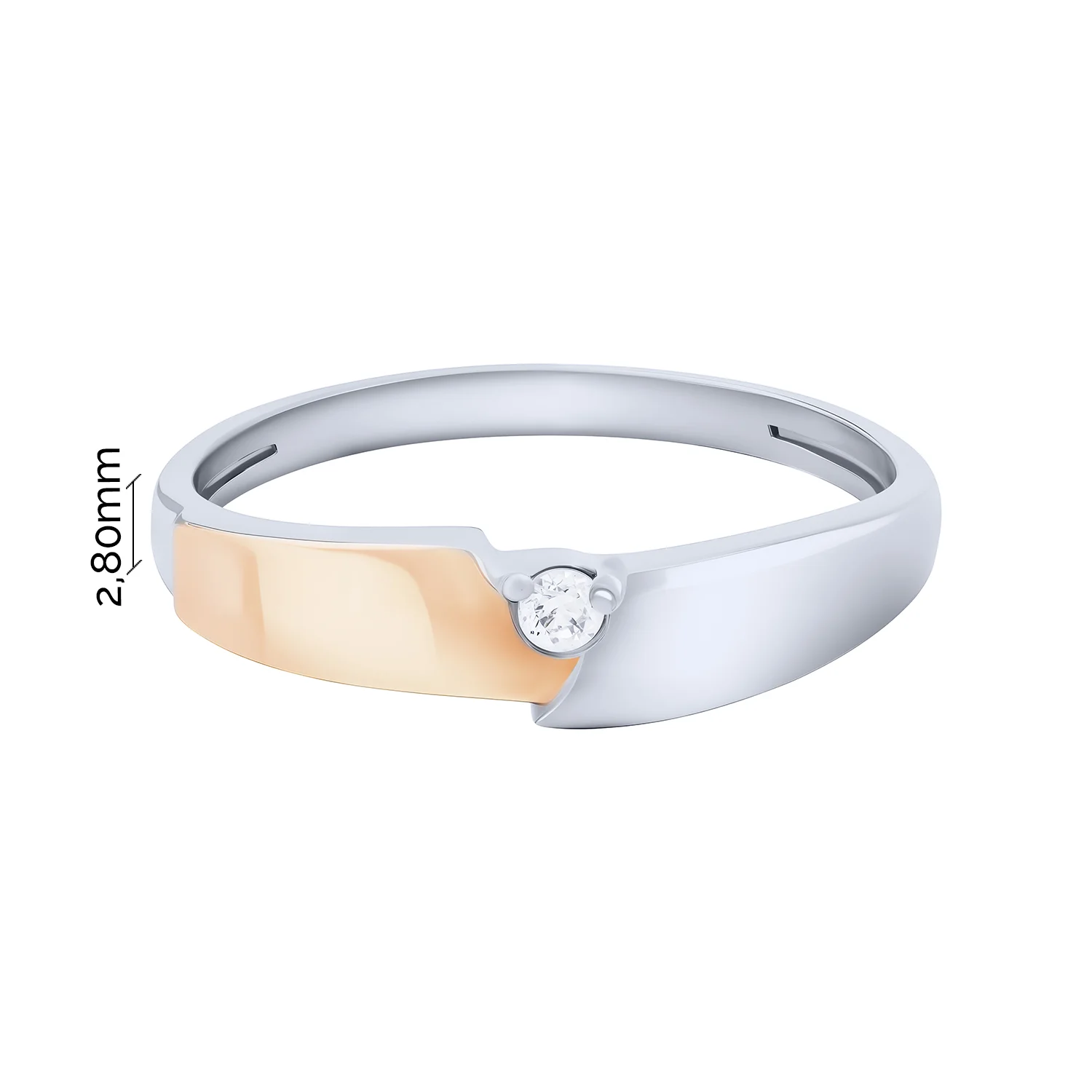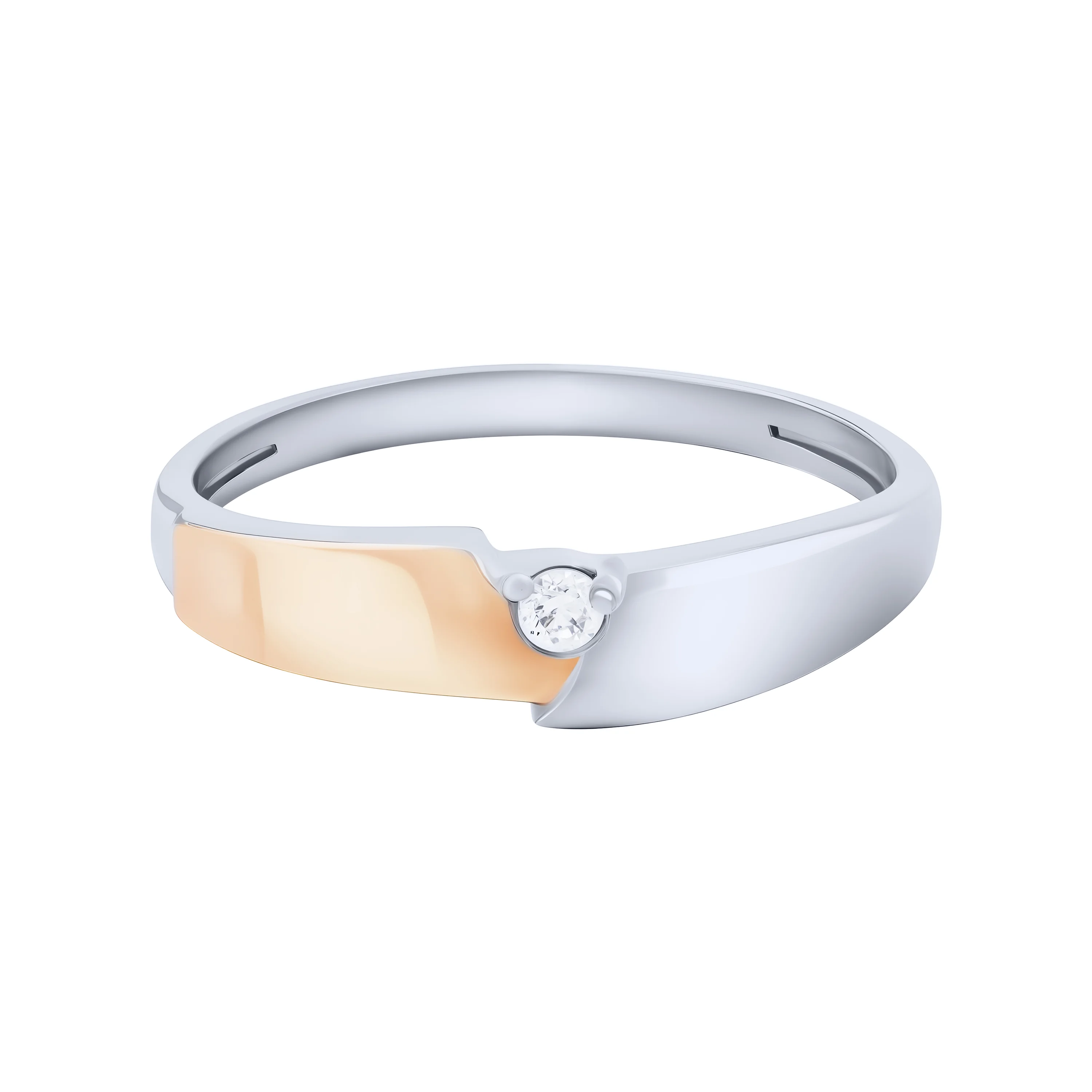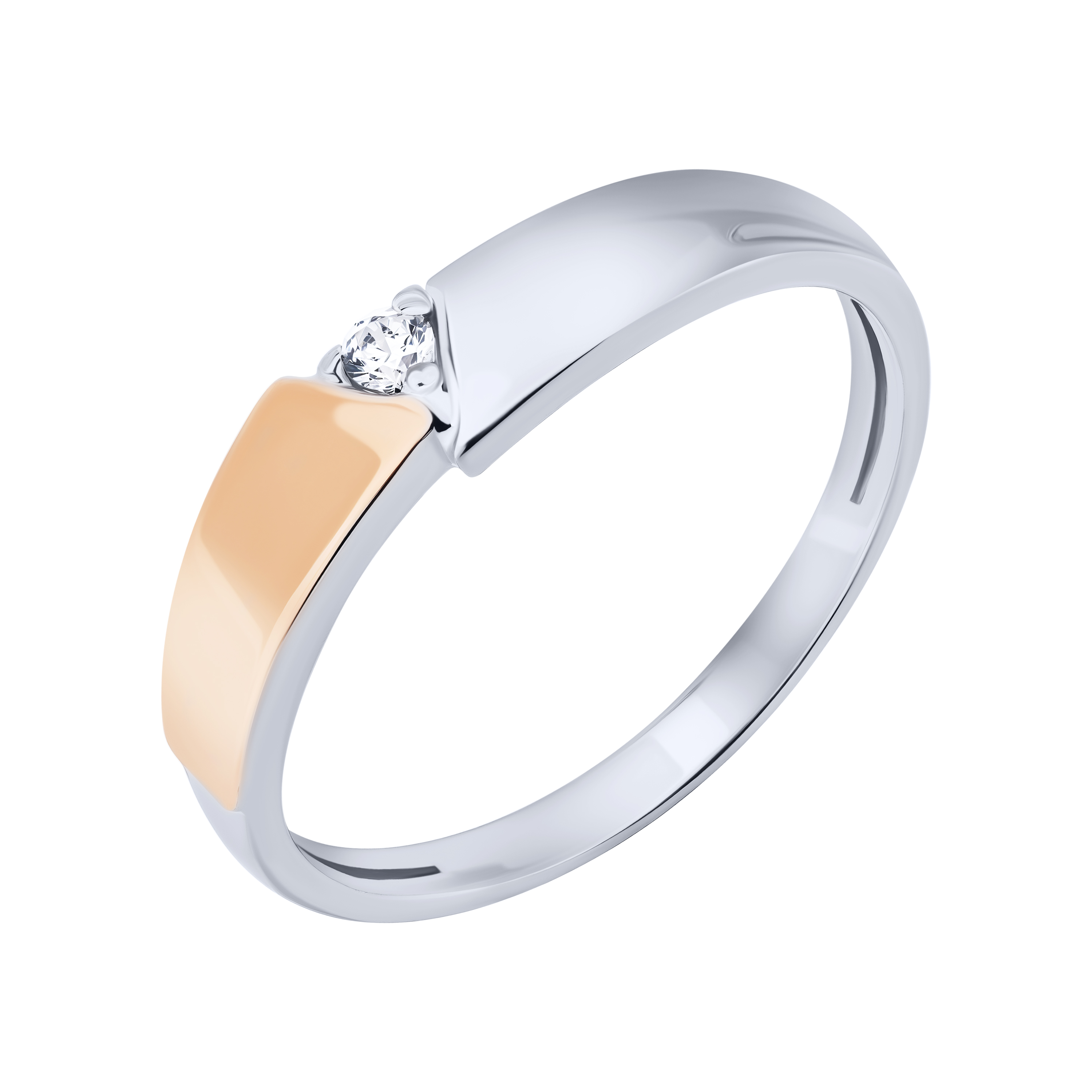 Серебряное кольцо с фианитом и серебряной накладкой - 2117653