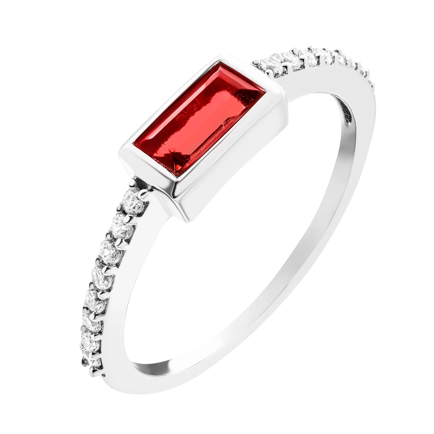 Серебряное кольцо с гранатом и фианитами - 1544810