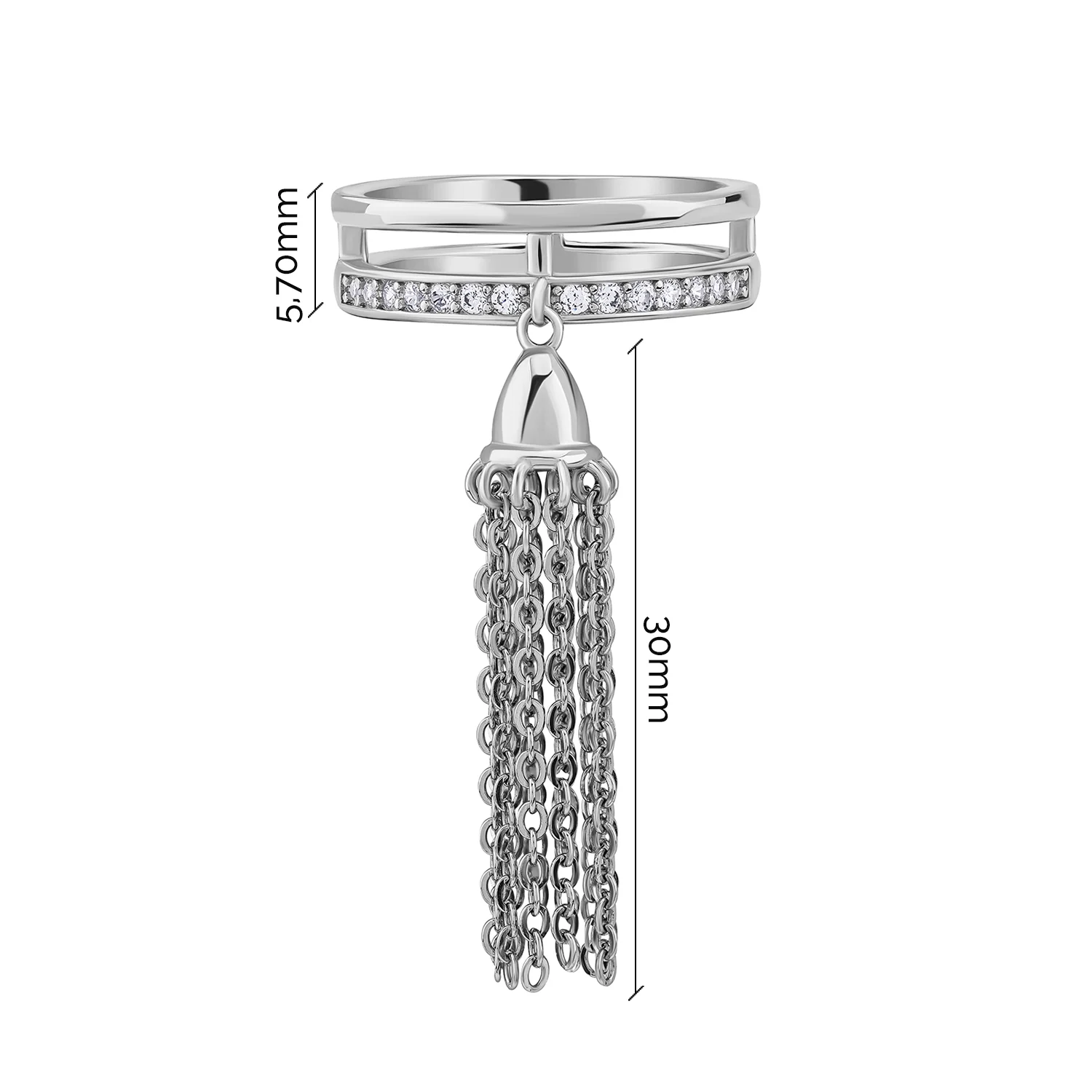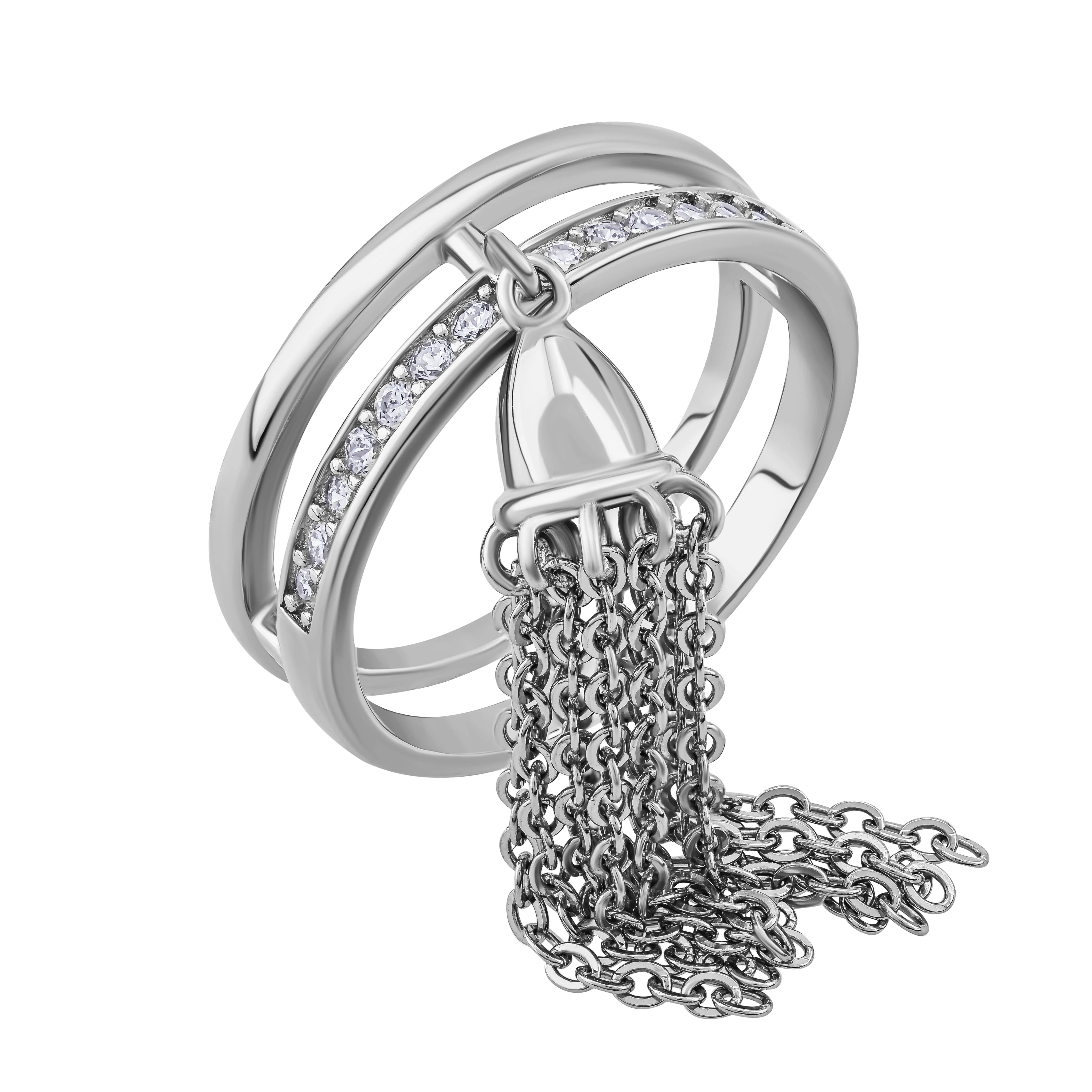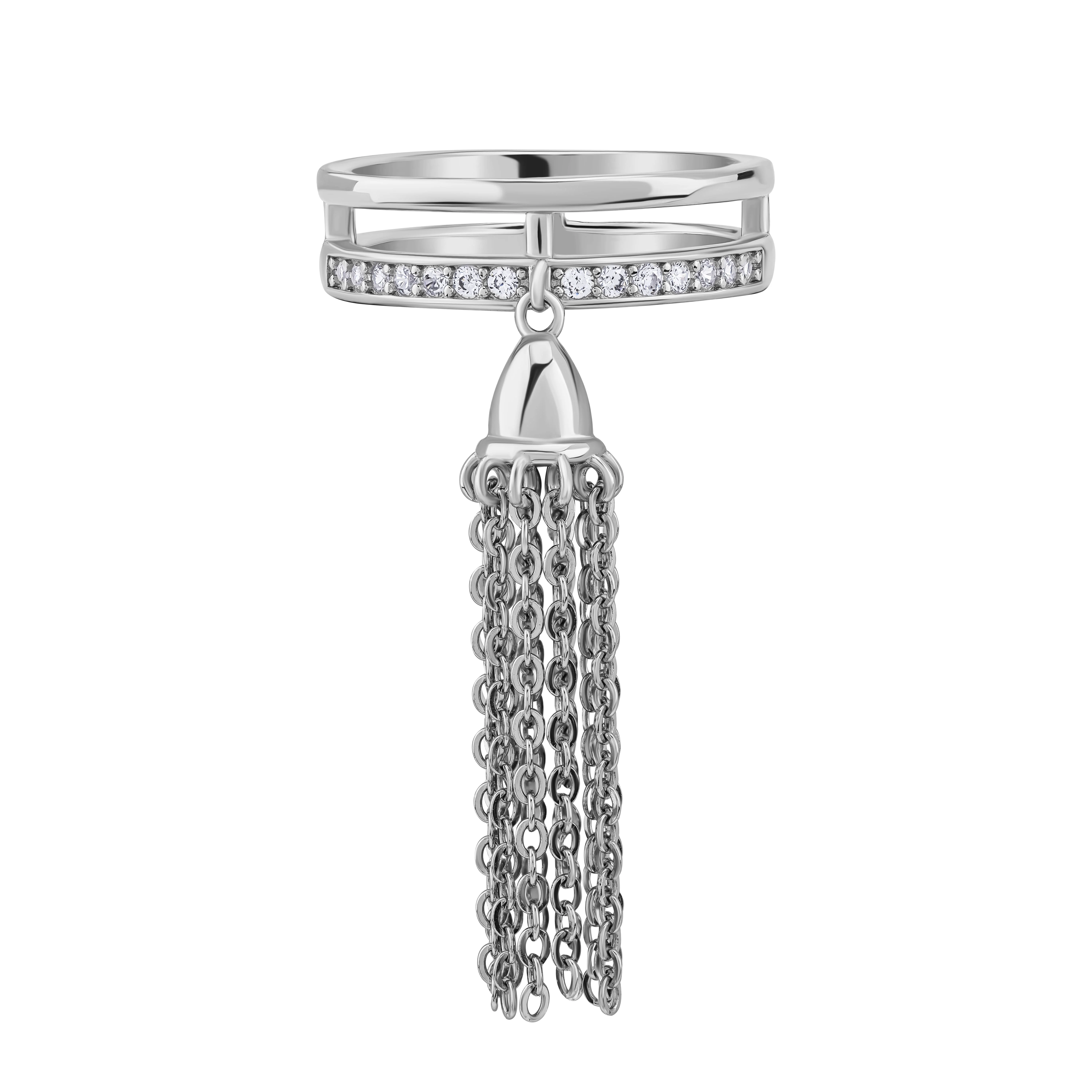Двойное серебряное кольцо с подвесом и дорожкой фианитов - 1974598