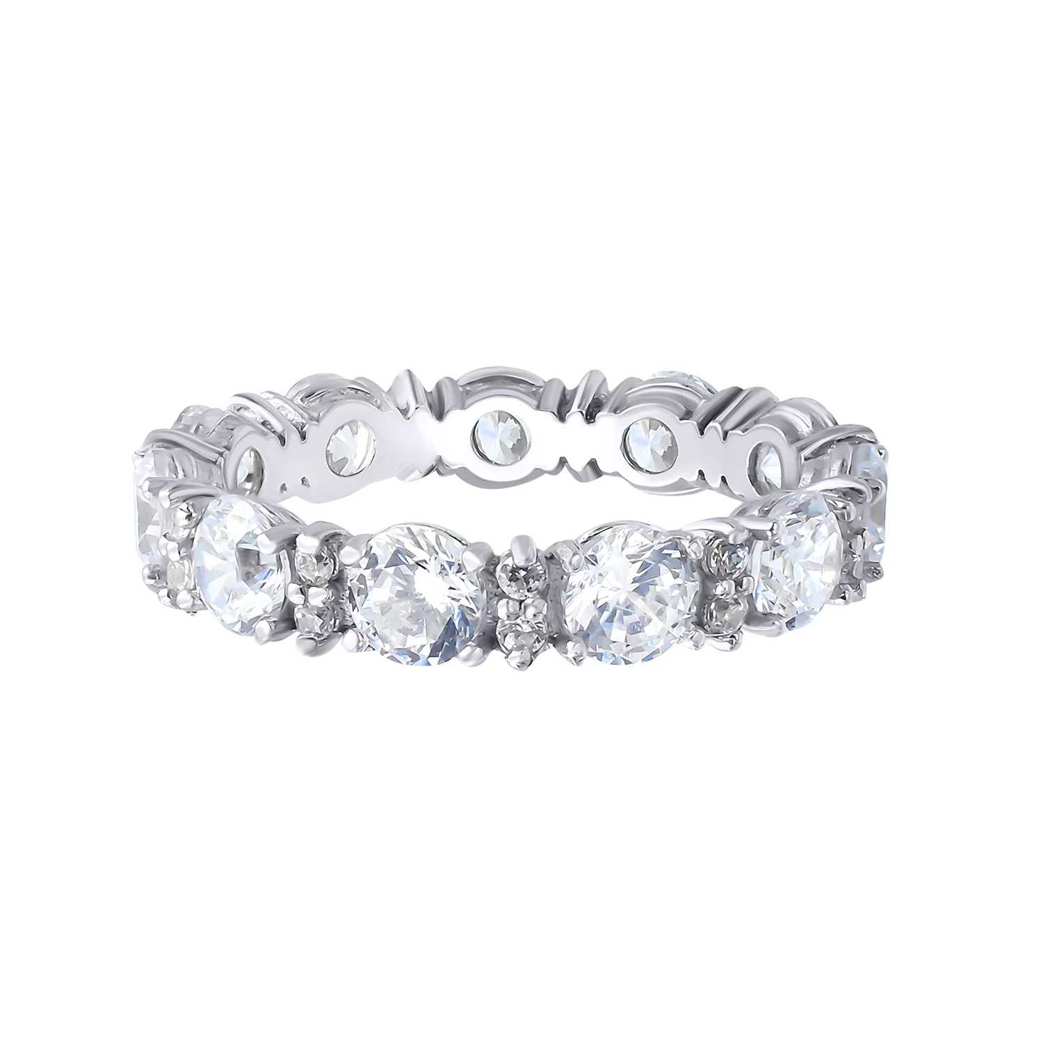 Серебряное кольцо с фианитом станет достойным украшением благодаря элегантному и нежному дизайну. Россыпь камней напоминает цветочный орнамент — более массивные драгоценные фианиты в круглой огранке сочетаются с маленькими блестящими вкраплениями и узорными завитками из серебра. Благородный цвет металла гармонично переливается с блеском камней. Качественный сплав 925 пробы — прочный и надежный, но легко поддается обработке для создания искусного дизайна. Украшение подчеркнет красоту женских пальцев и станет дополнением праздничных образов.