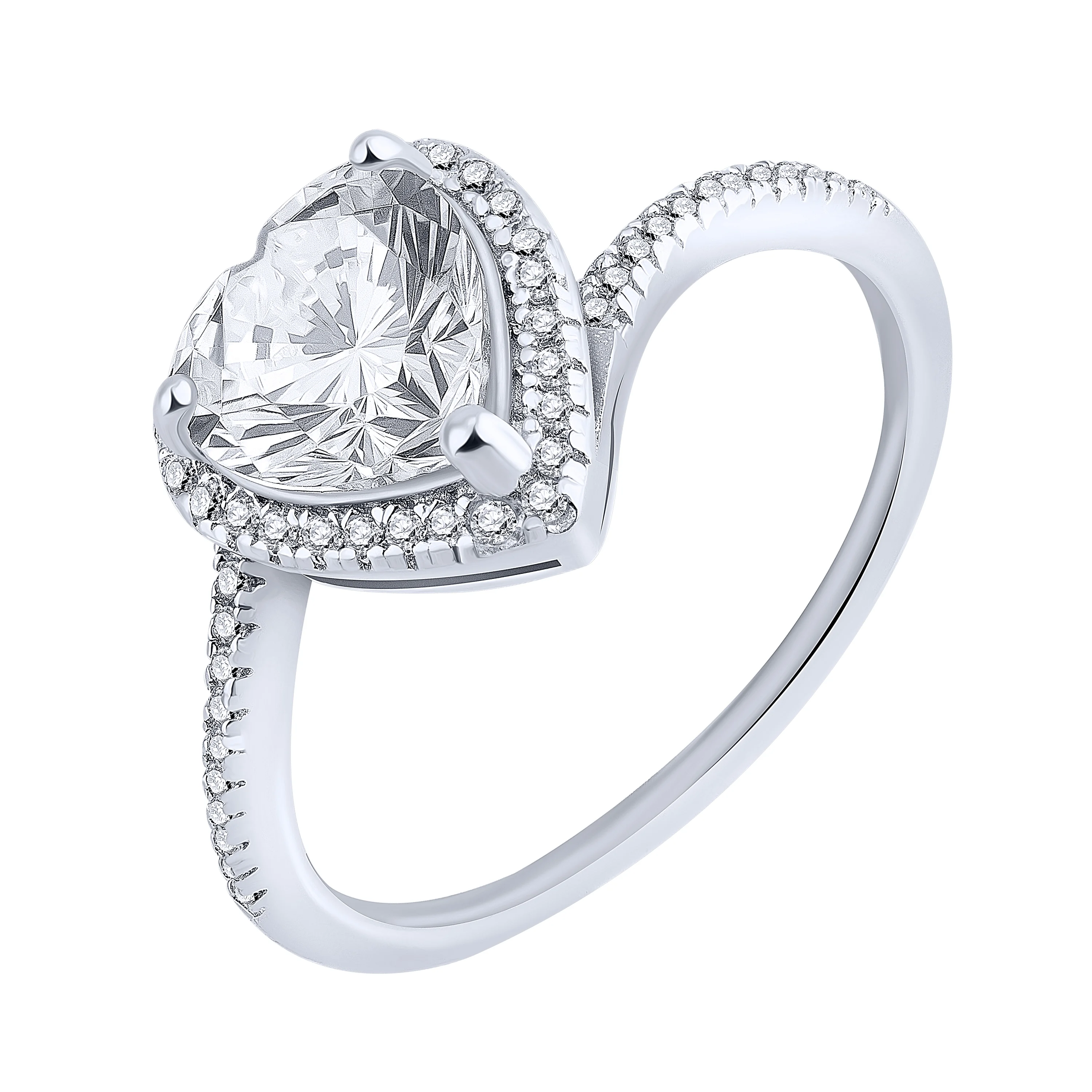 Серебряное кольцо "Сердце" с фианитами - 1968108