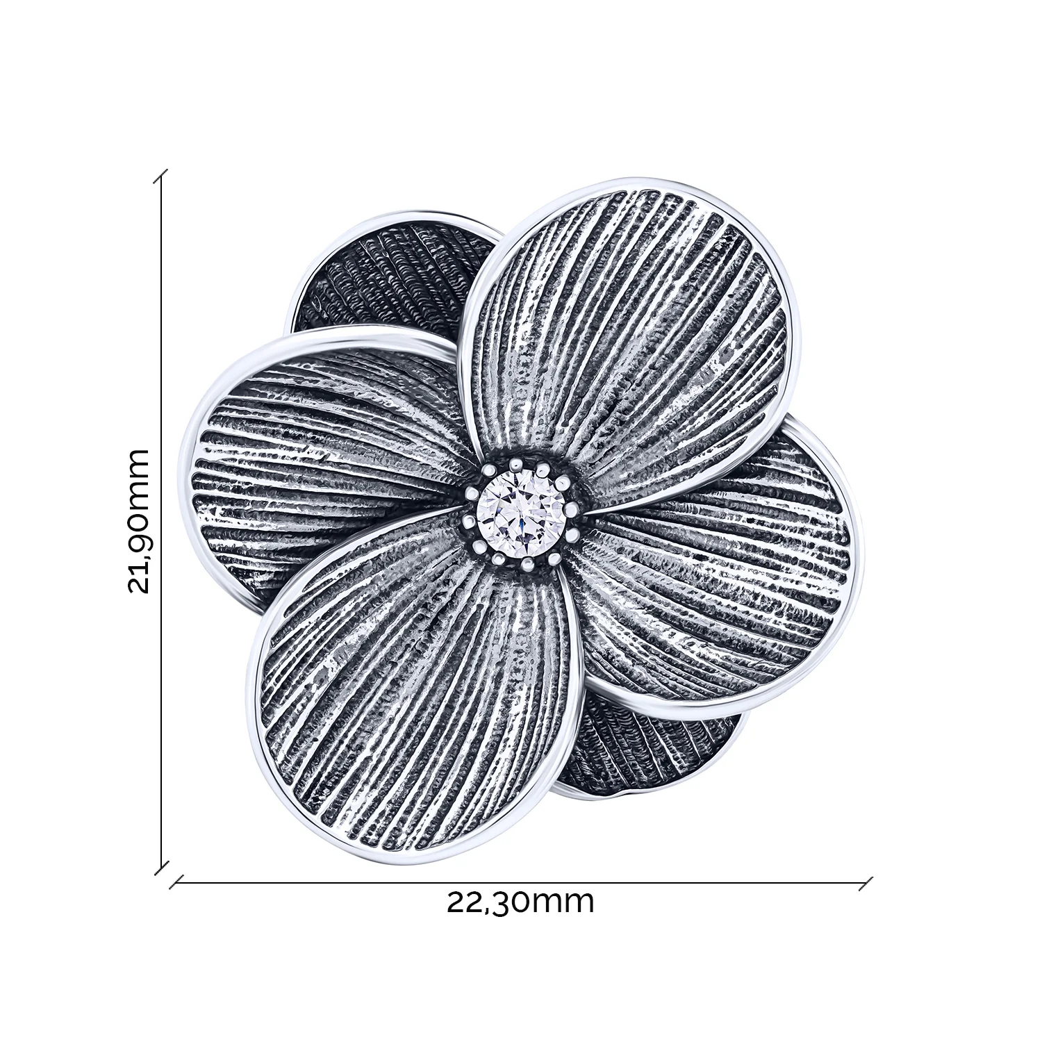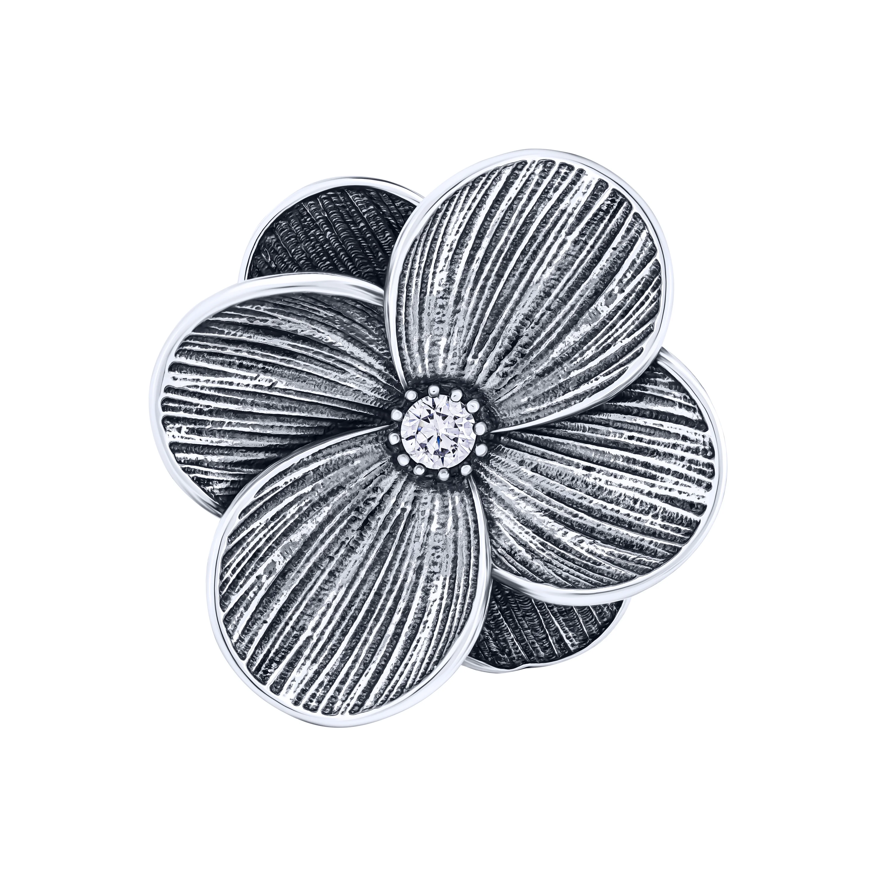 Серебряное кольцо "Цветок" с чернением и фианитом - 2078541