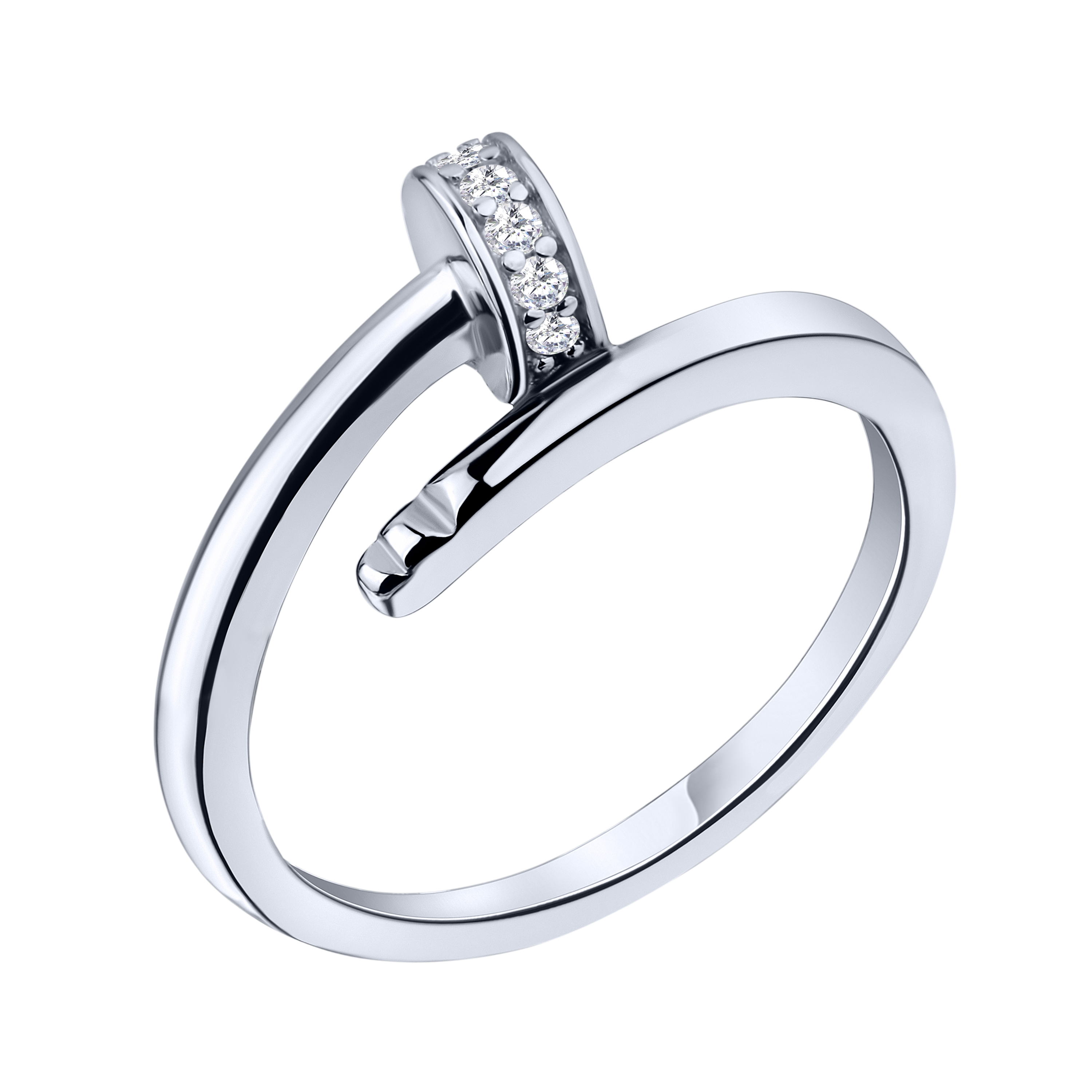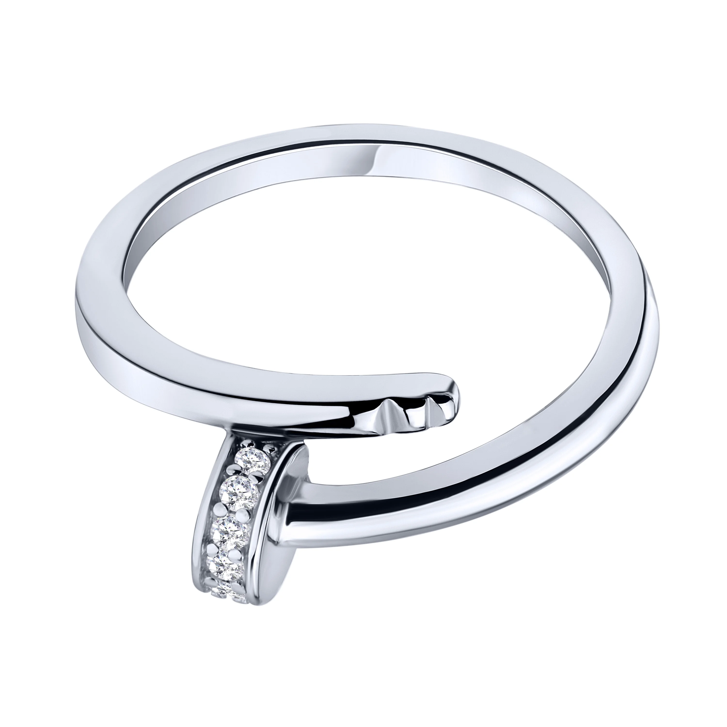 Серебряное незамкнутое кольцо "Гвоздь" с фианитами - 2159239