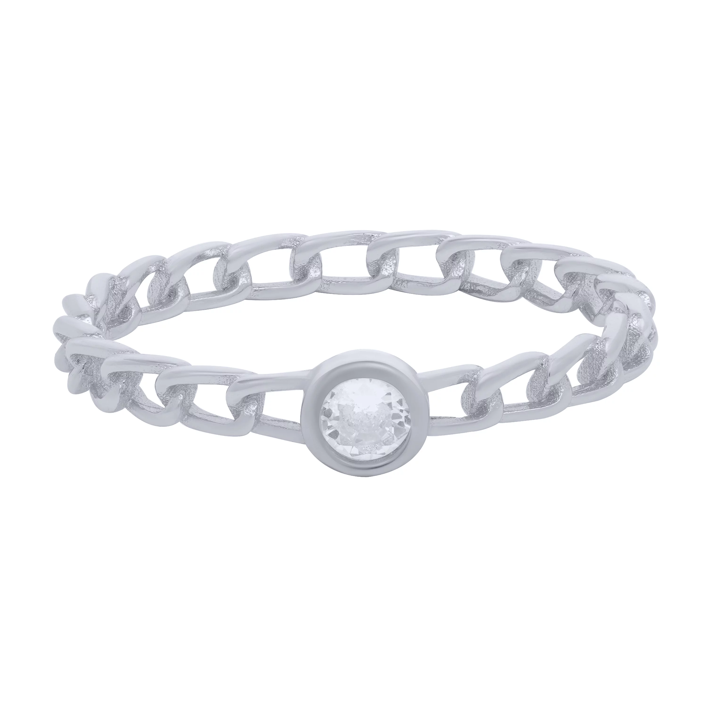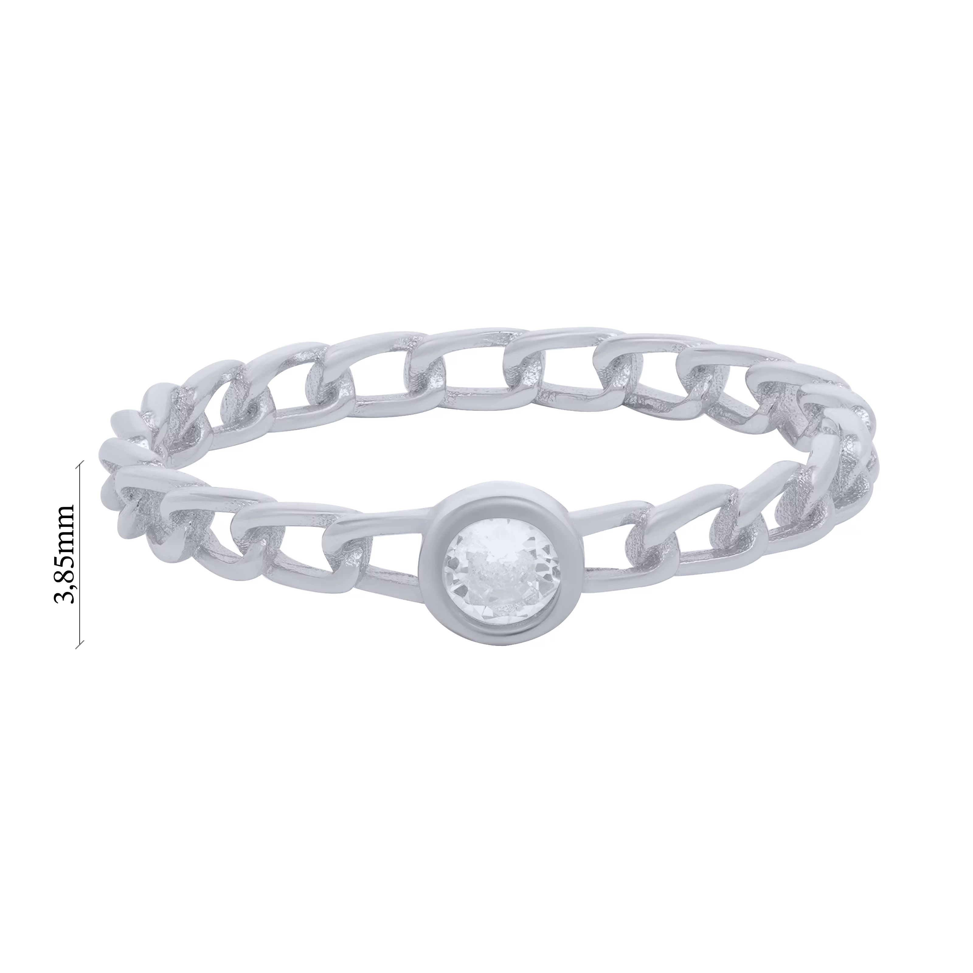 Серебряное тонкое кольцо в форме цепочки с фианитом - 1683119