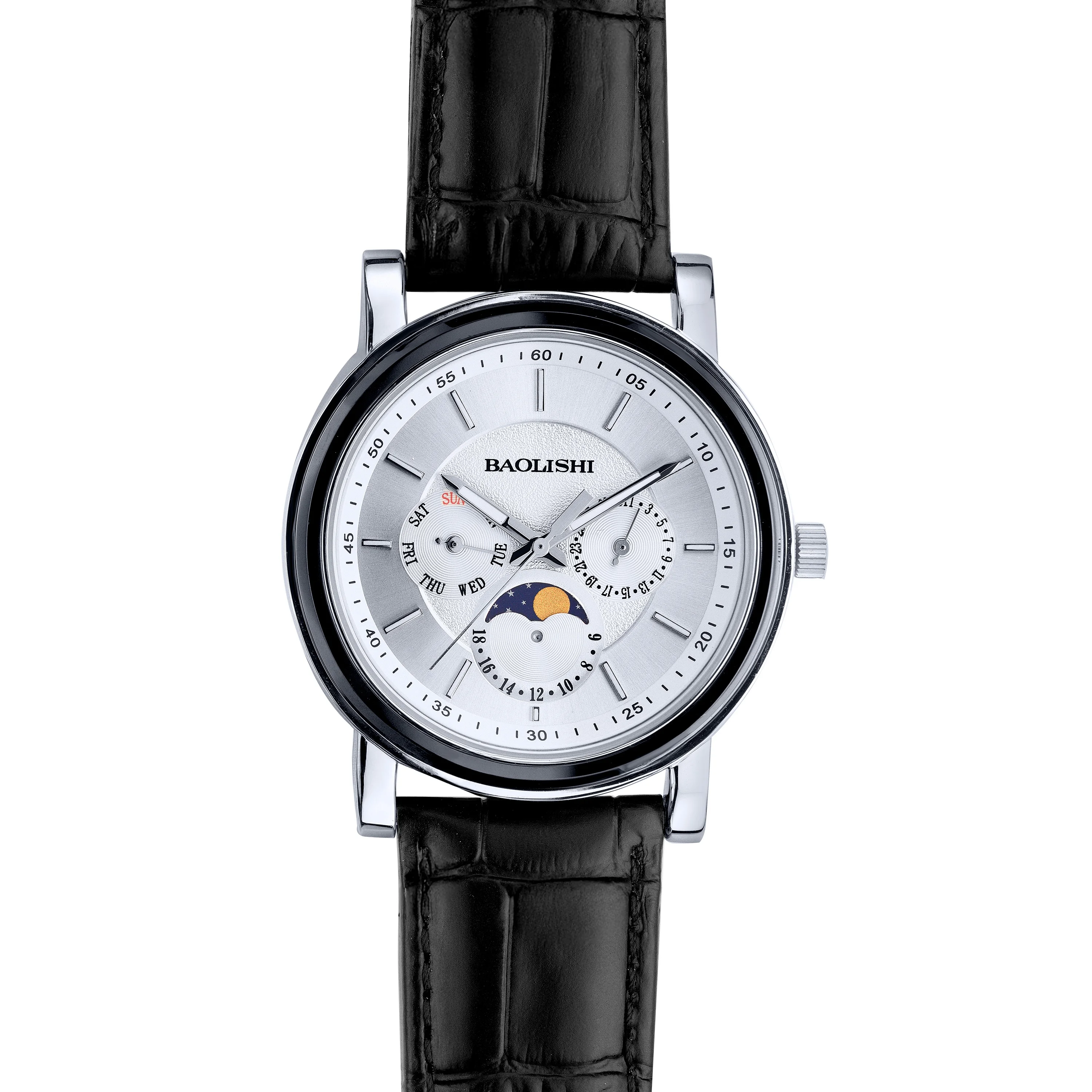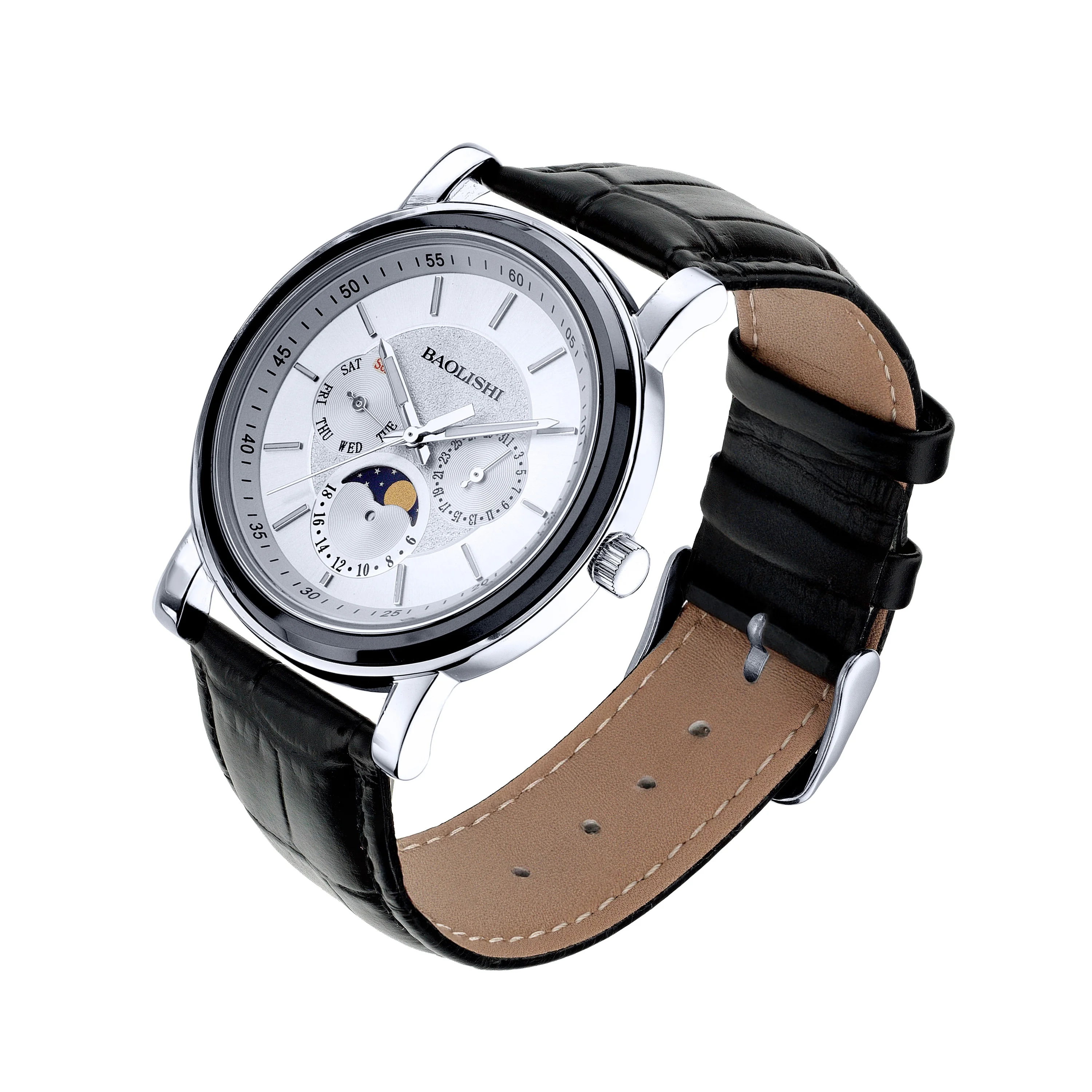 Серебряные часы с кожаным ремешком с керамикой - 2199785