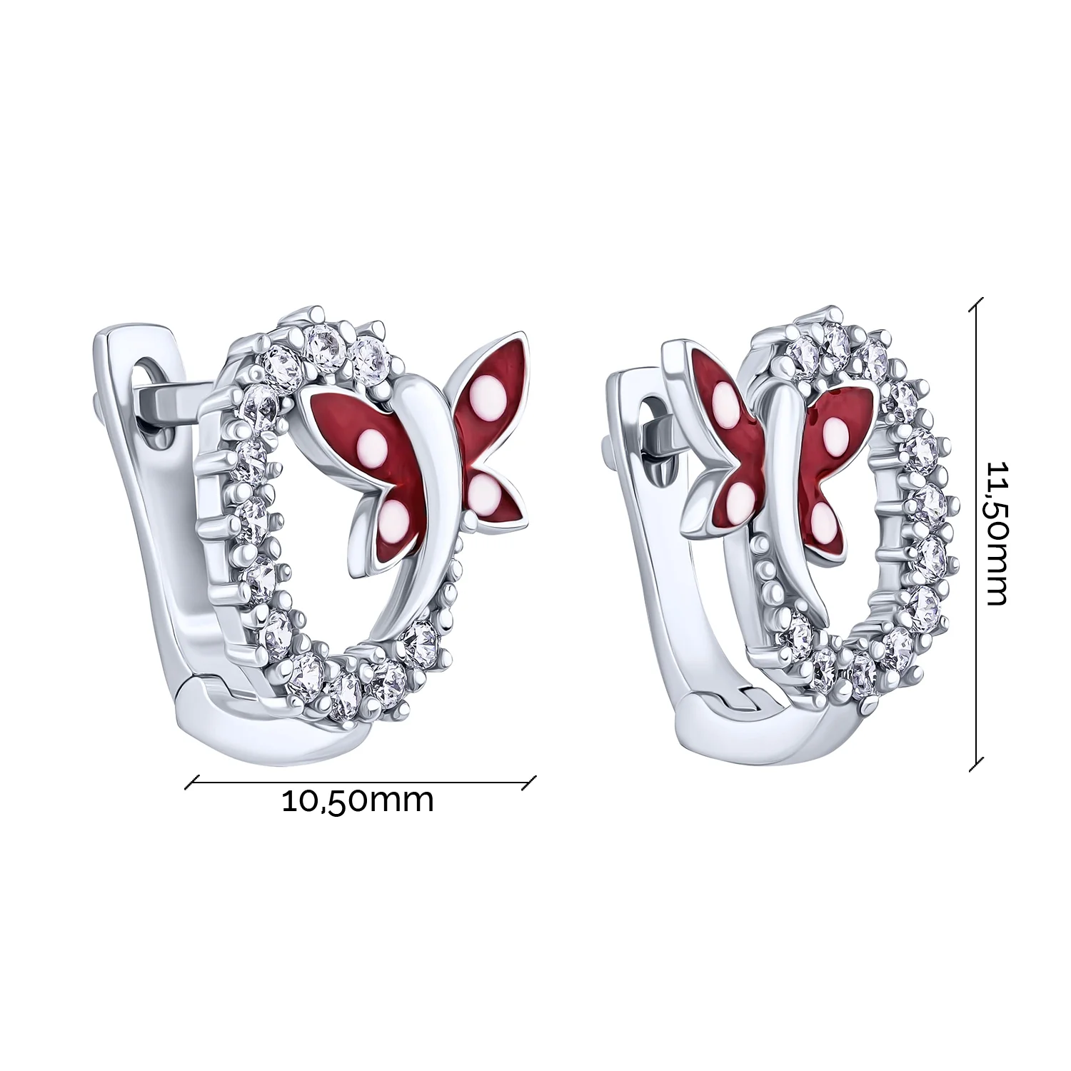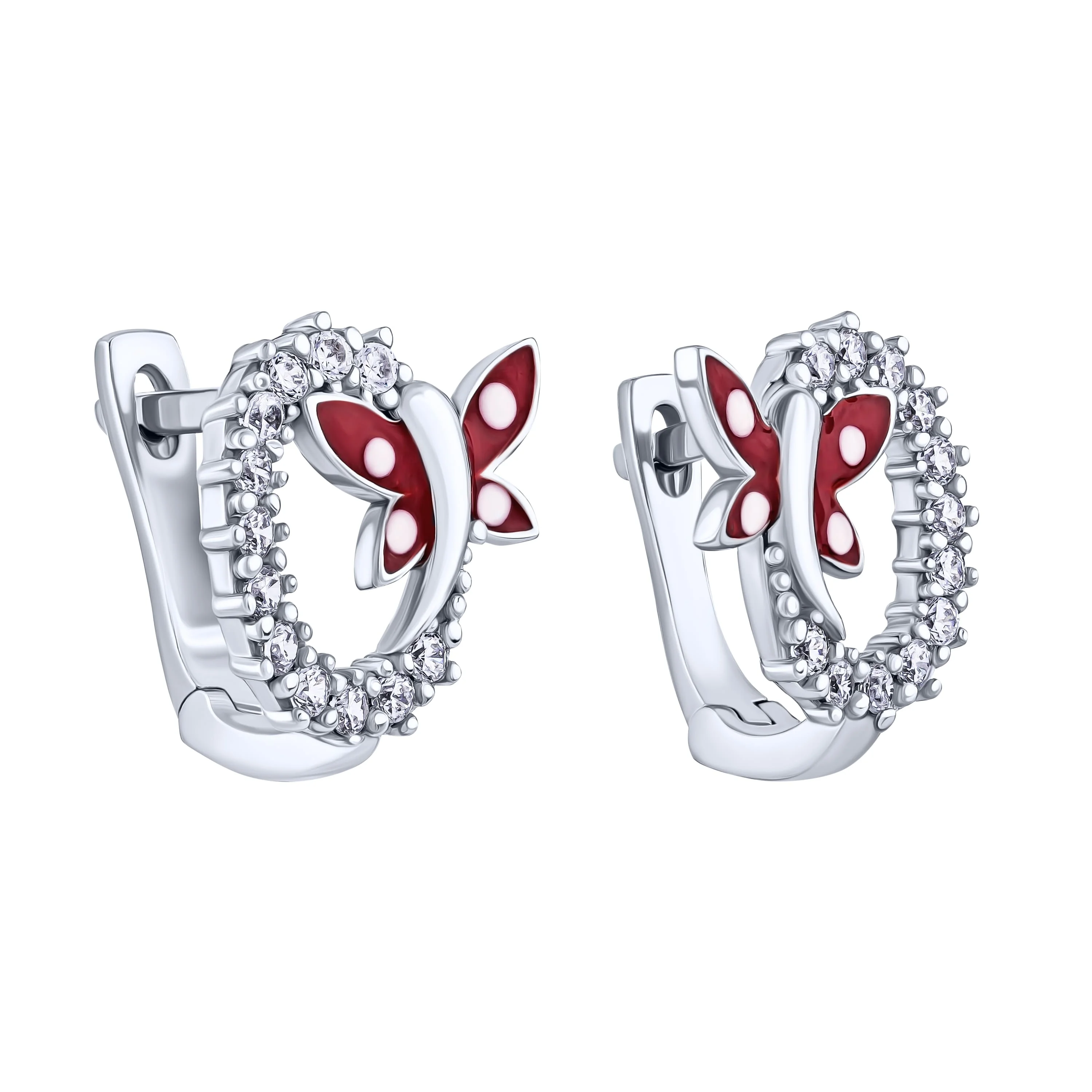 Серебряные детские серьги "Бабочка" с дорожкой фианитов и эмалью - 1989062