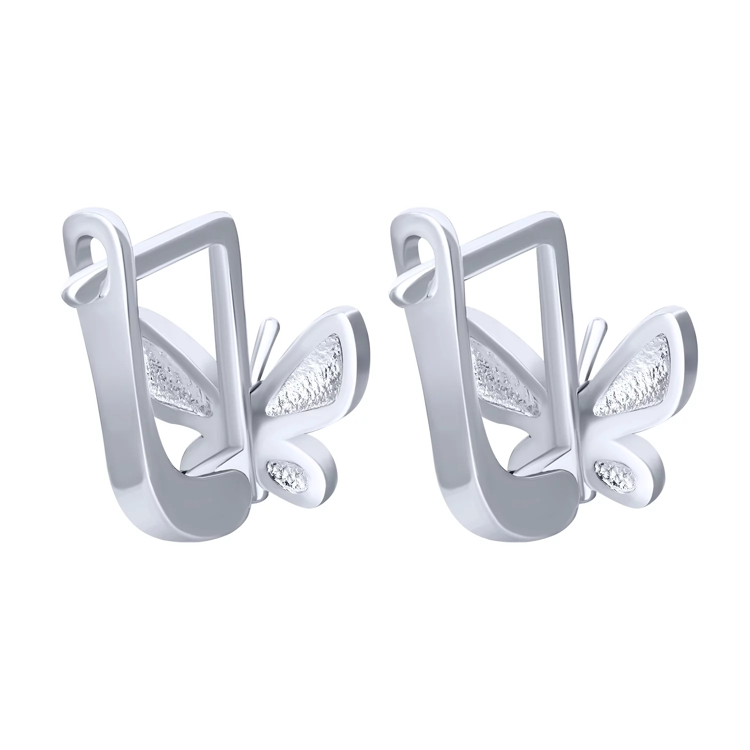 Серебряные детские серьги "Бабочка" с эмалью - 1679827