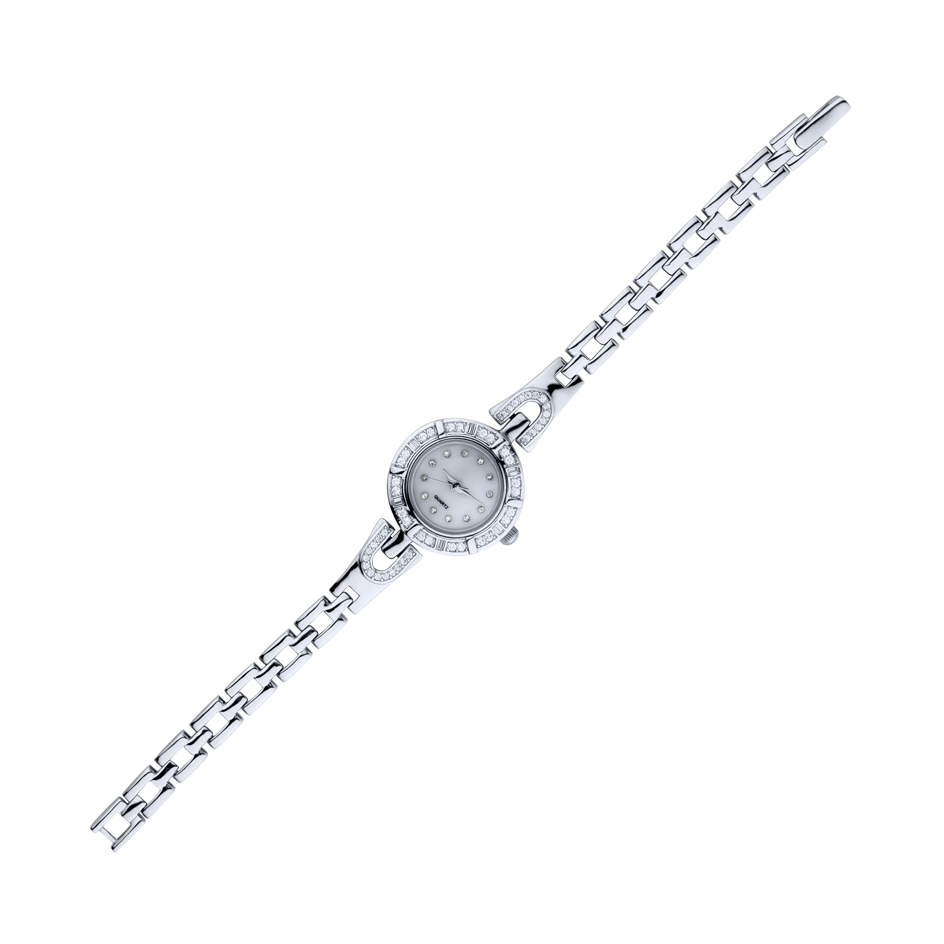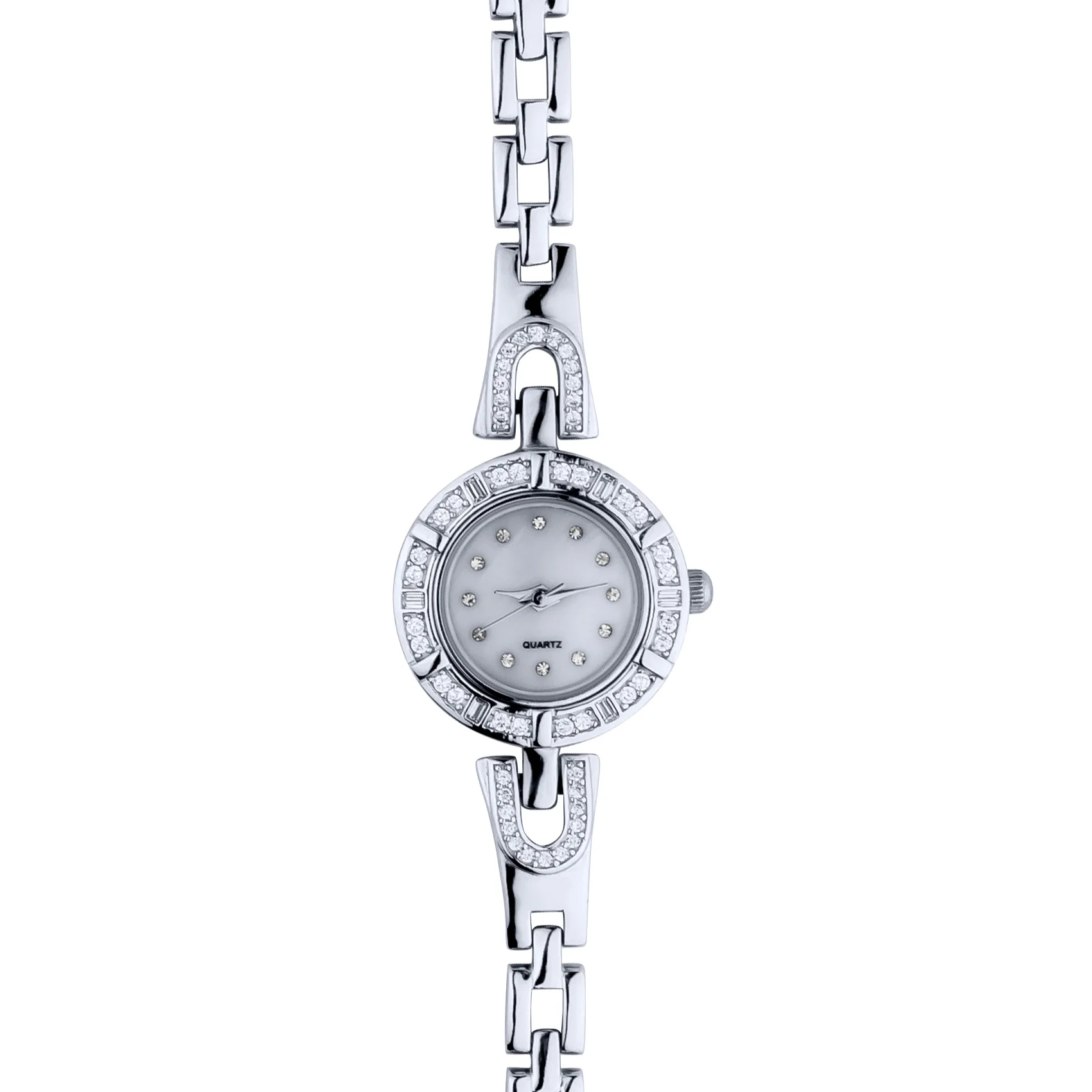 Серебряные наручные часы с россыпью фианитов в плетении ролекс - 2046203