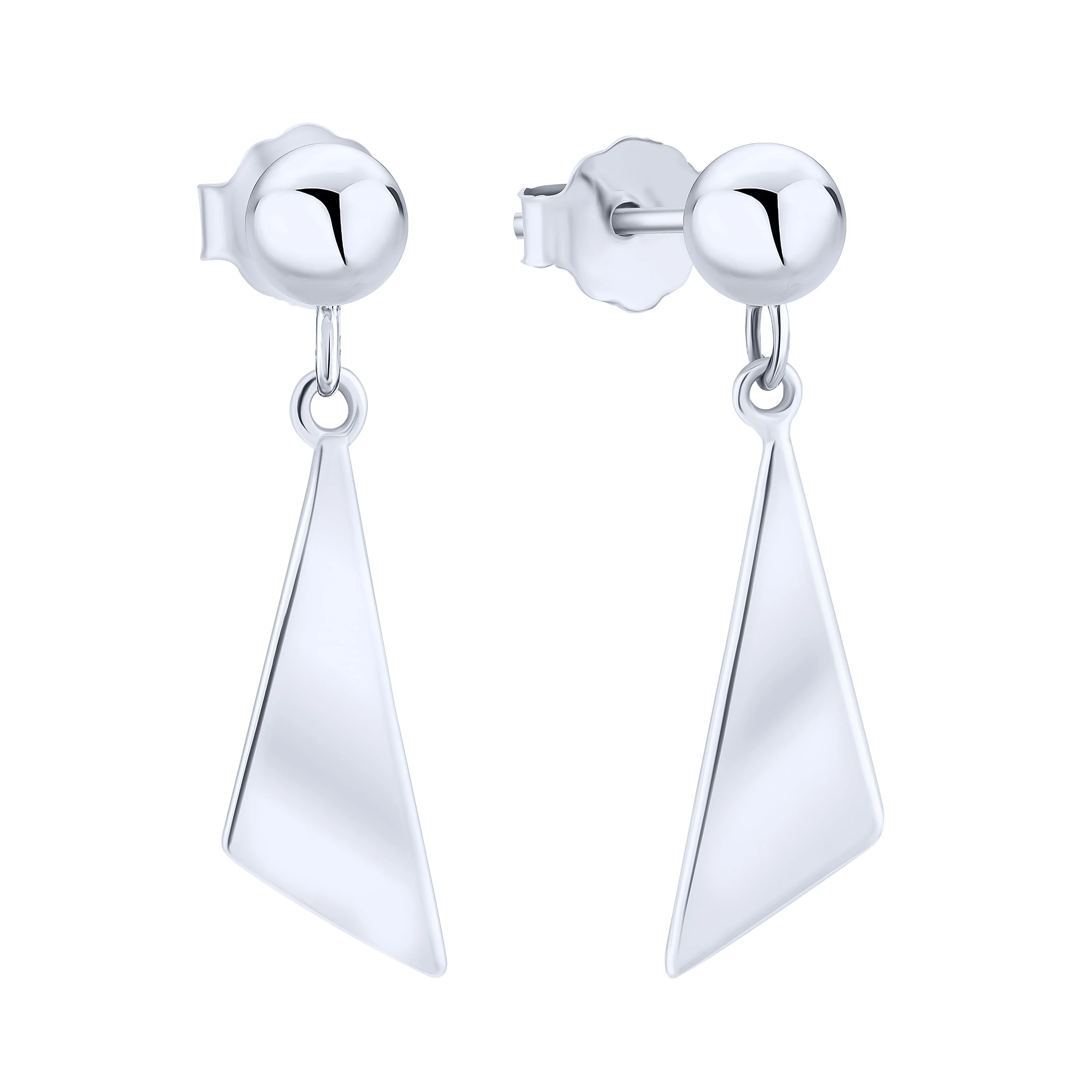 Серебряные сережки-гвоздики с подвесами "Треугольники" - 1979423