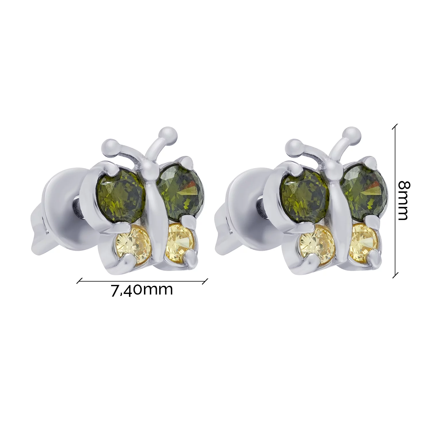 Элегантные серебряные сережки-пусеты "Бабочка" с россыпью фианитов - 1938063