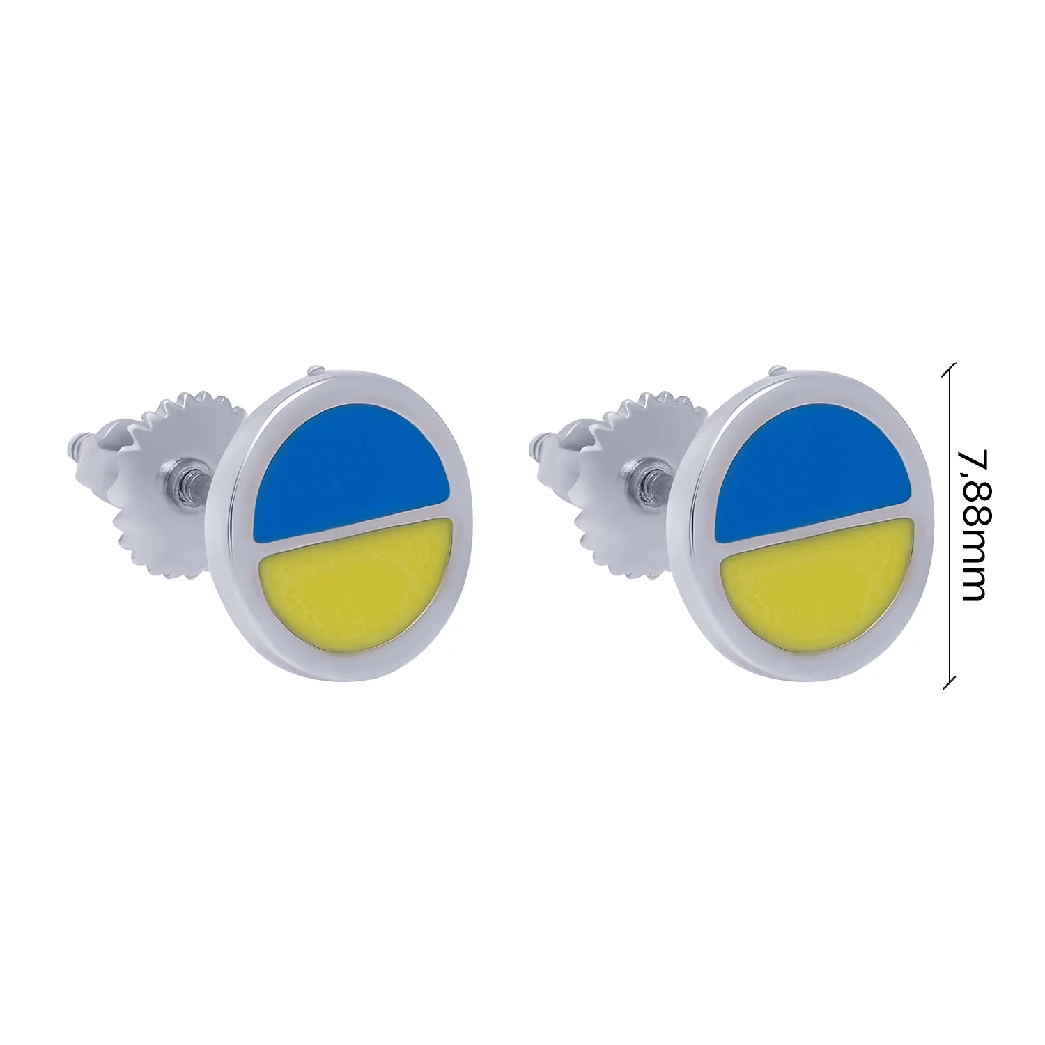 Сережки-гвоздики "Геометрические фигуры" из красного золота с эмалью - 1614827