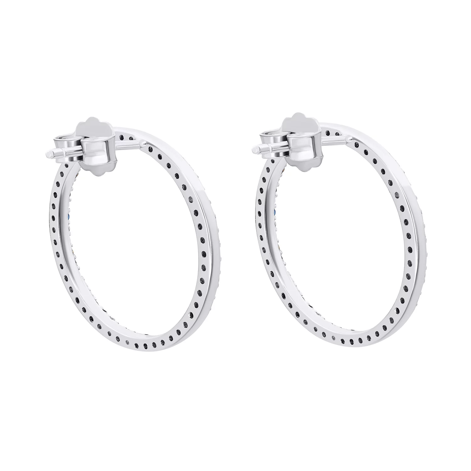 Серебряные стильные сережки-пусеты "Клевер" с ониксом и фианитами - 1940309