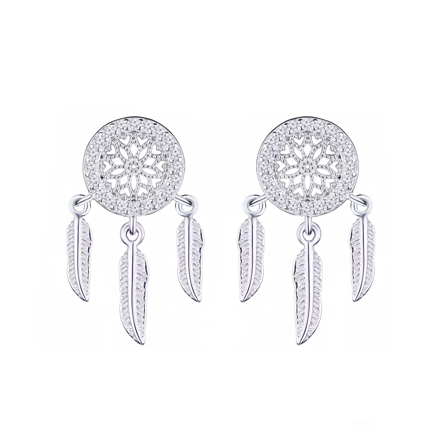 Серебряные серьги-гвоздики Ловец Снов с фианитами - 1517272