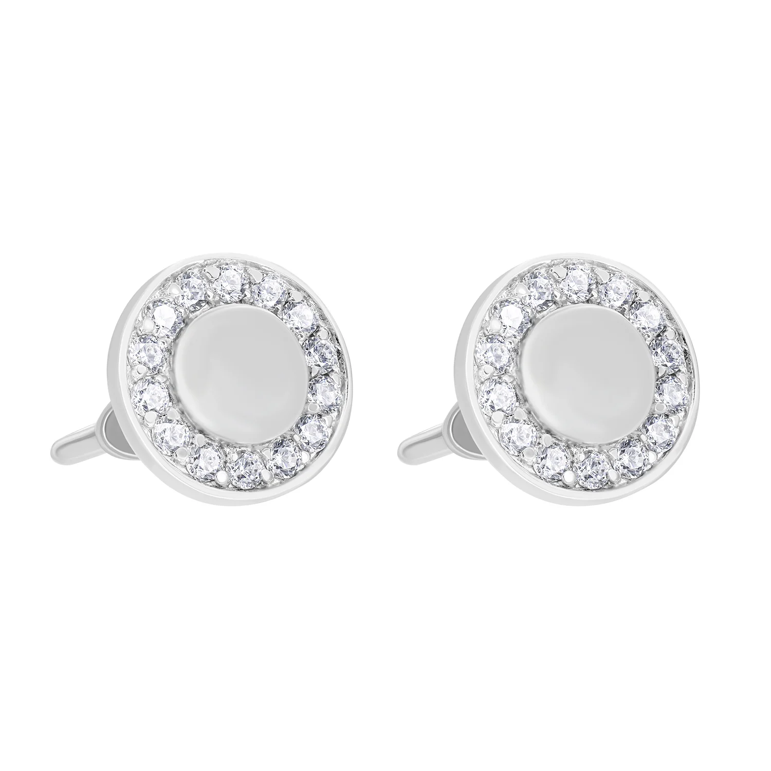 Серебряные серьги-гвоздики с дорожкой фианитов - 1579430