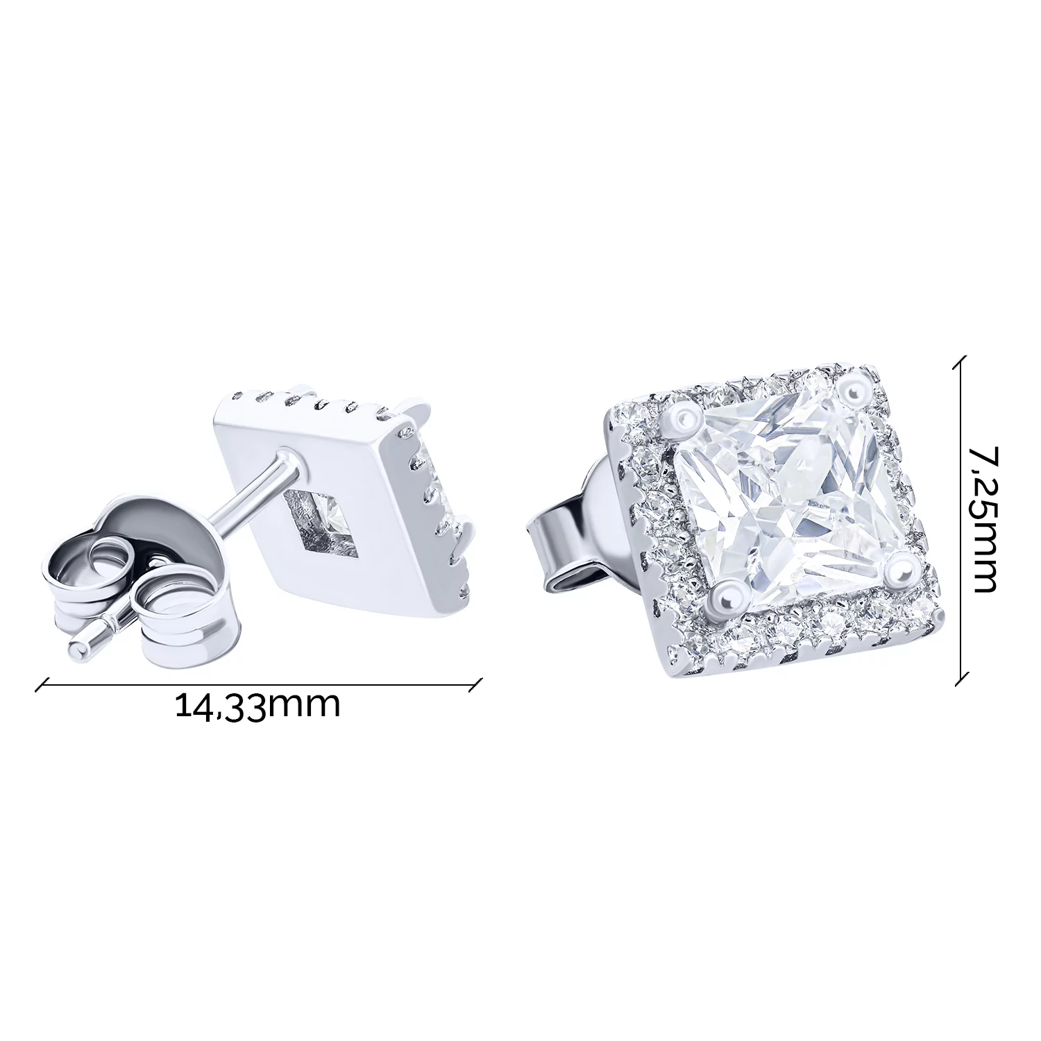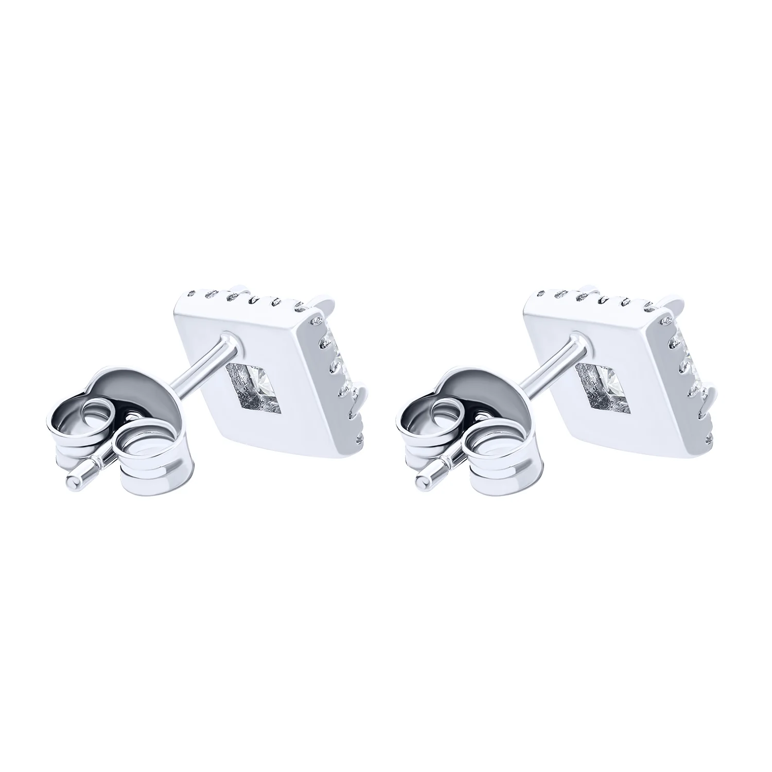 Серебряные серьги-гвоздики с фианитами - 1572567